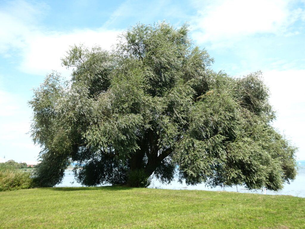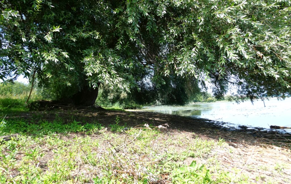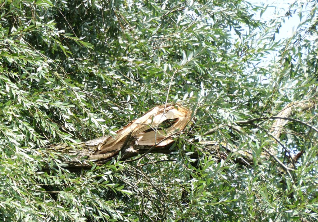 Der Pegelstand ging schon wieder zurück, das erkennt man gut unter der Weide.