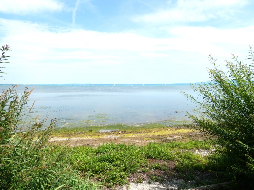 An den vielen Segelbooten auf dem See an diesem heissen Sommertag erkennt man, dass es Ferienzeit ist. Bei uns war der Juli trocken und heiss. Erst in den letzten Julitagen regnete es endlich am Bodensee, auch hat es merklich abgekühlt. Die intensiven Farben an Land und auf dem Wasser sind typisch für den Sommer.