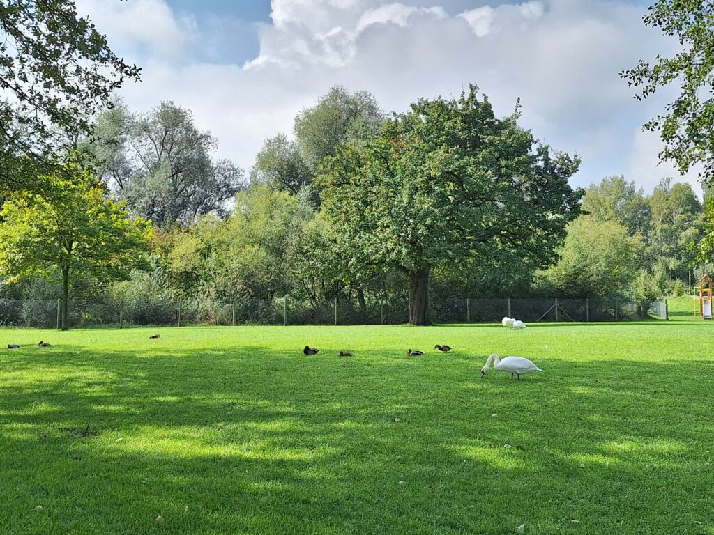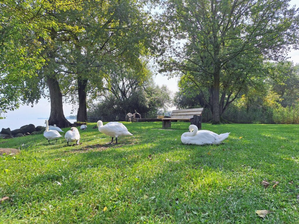 Ich staunte nicht schlecht als ich sah, dass die Badewiese jetzt von den Schwänen in Beschlag genommen wurde. Die letzten Badegäste müssen sich nun die Liegewiese teilen.