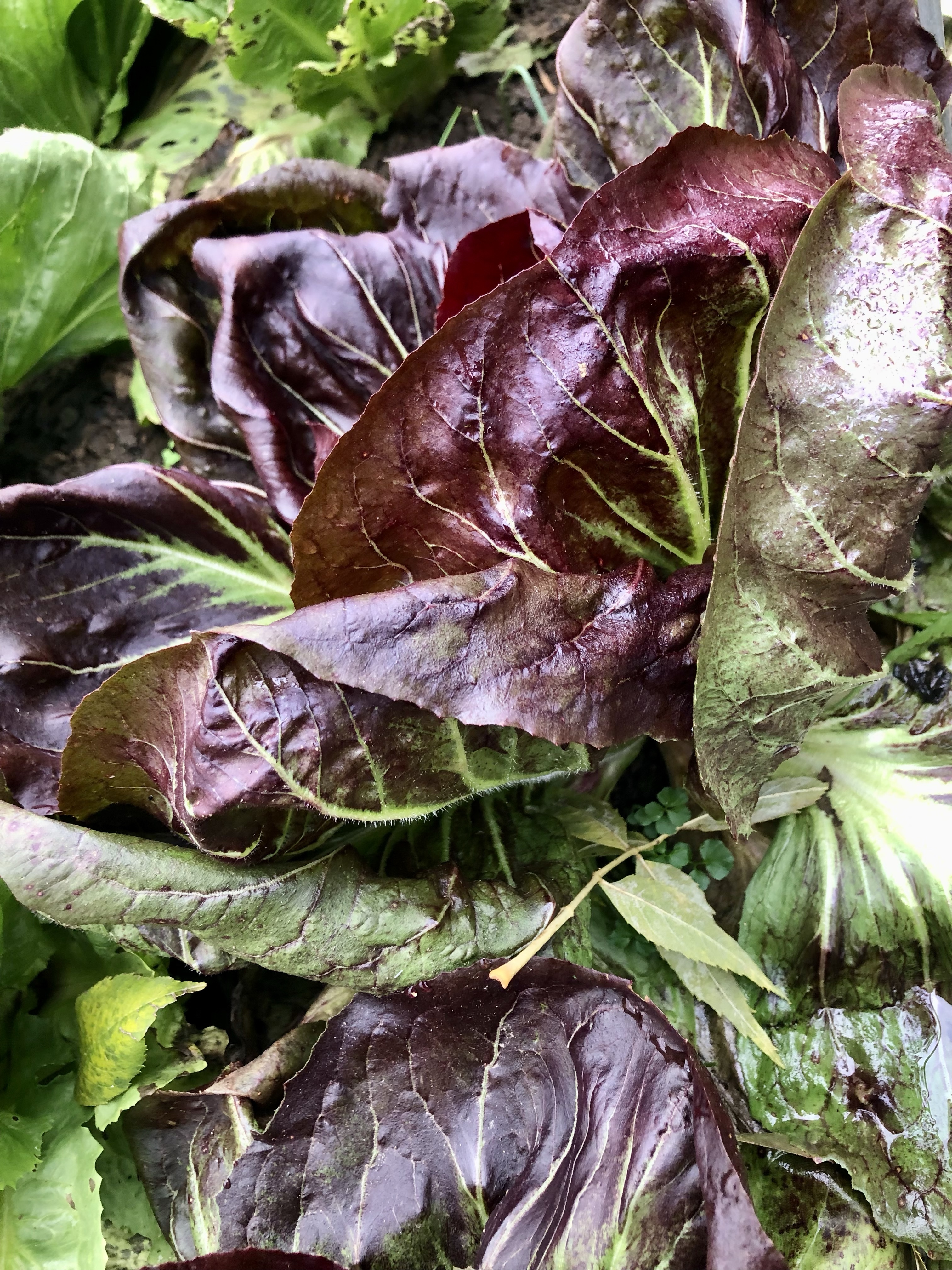 Auf den Gartenbeeten gibt es auch noch Gemüse. Beim Chicorée Rosso und Zuckerhut muss man jeden Tag kontrollieren, ob keine Maus die leckeren Pfahlwurzeln gewittert hat. Eine einzige Maus ist im Stande, ein ganzes Beet zu vernichten.