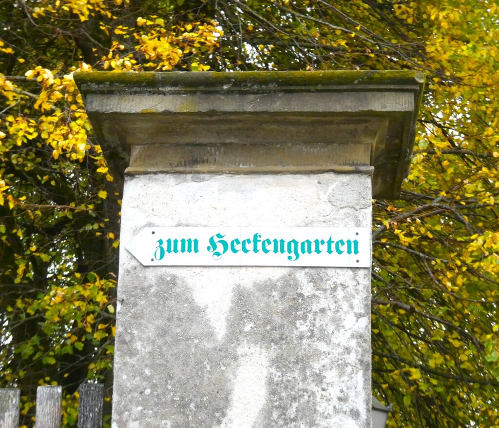 Das trübe Wetter liess die Blätter weniger strahlen. Mit den Rosen, die teils an den Bäumen emporrankten, kann man sich gut vorstellen, wie lebhaft und farbenfroh der Garten zur Blütezeit sein muss.