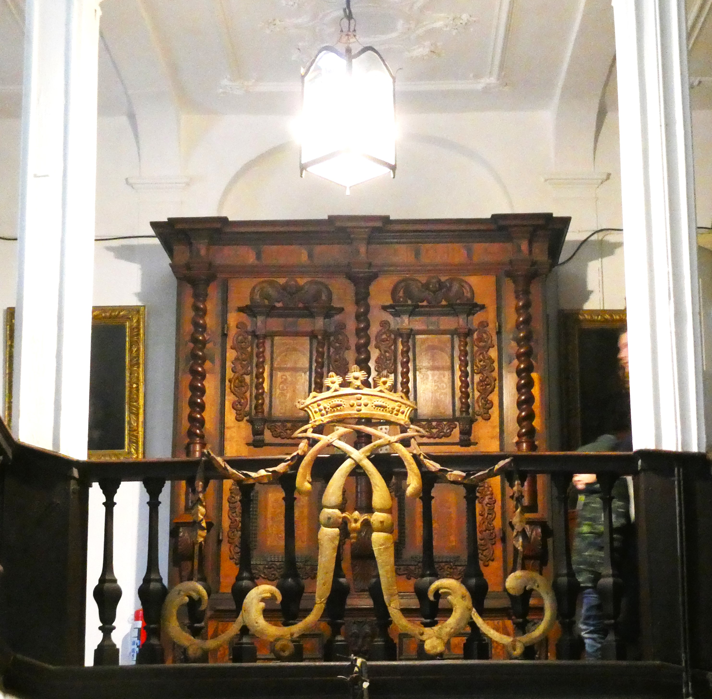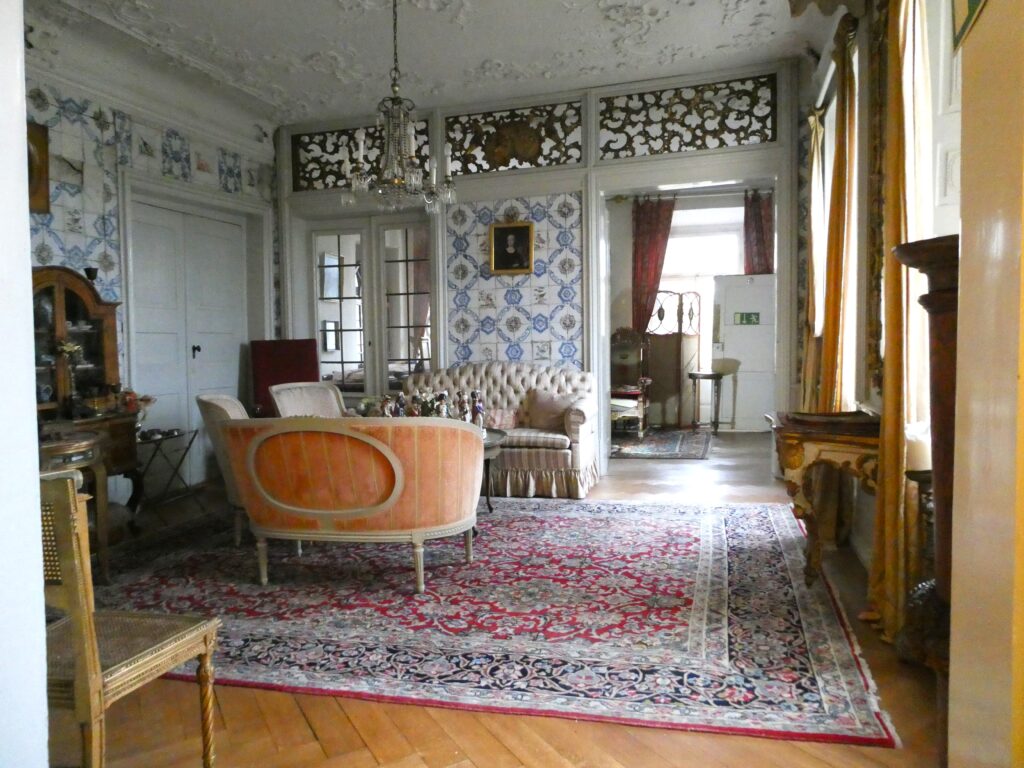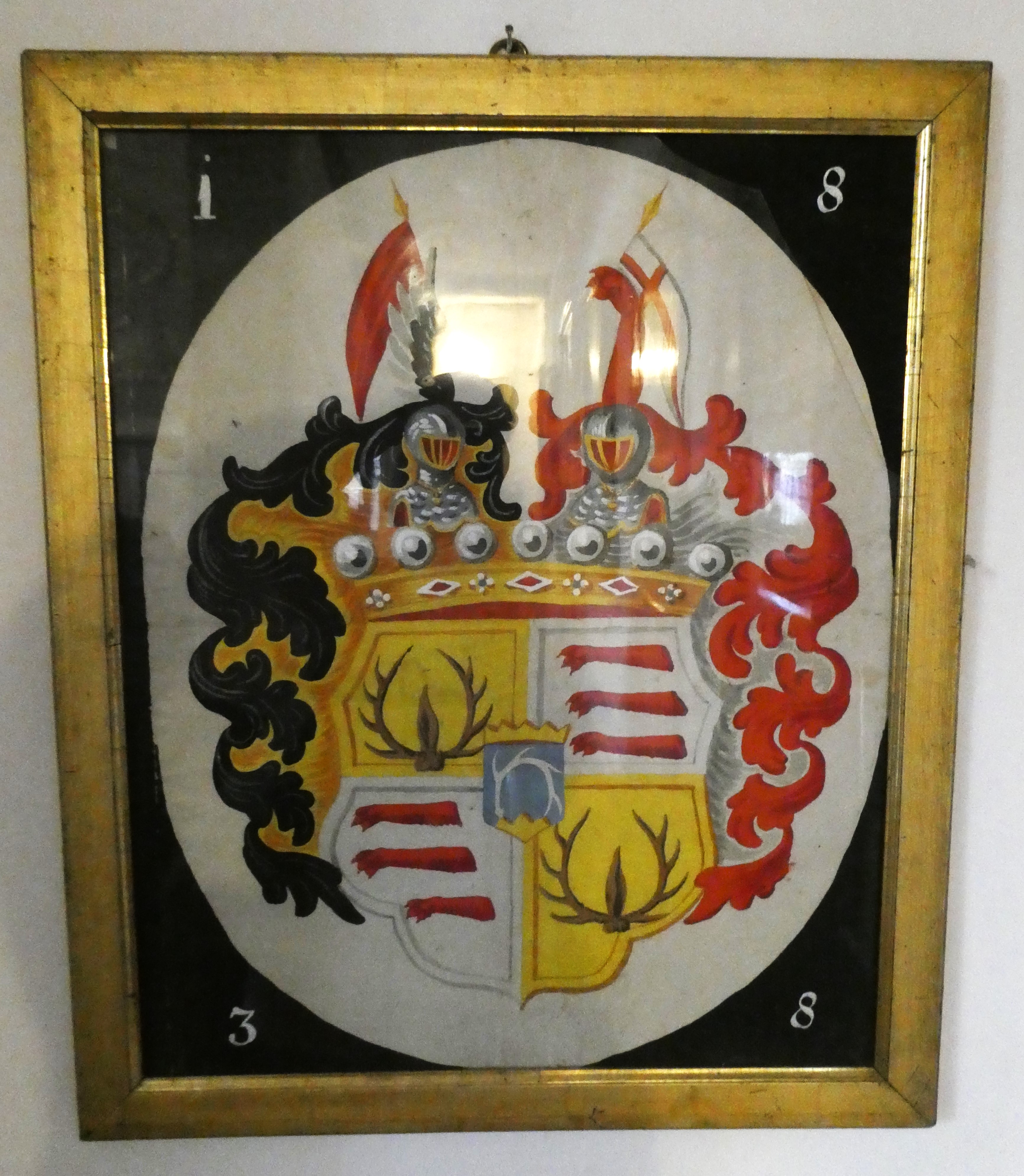Im Schlossinneren begegnete man überall barocken Möbeln und Gemälden der Ahnen. Ein besonderes Highlight war das kunstvoll geschnitzte Familienwappen am Treppengeländer.