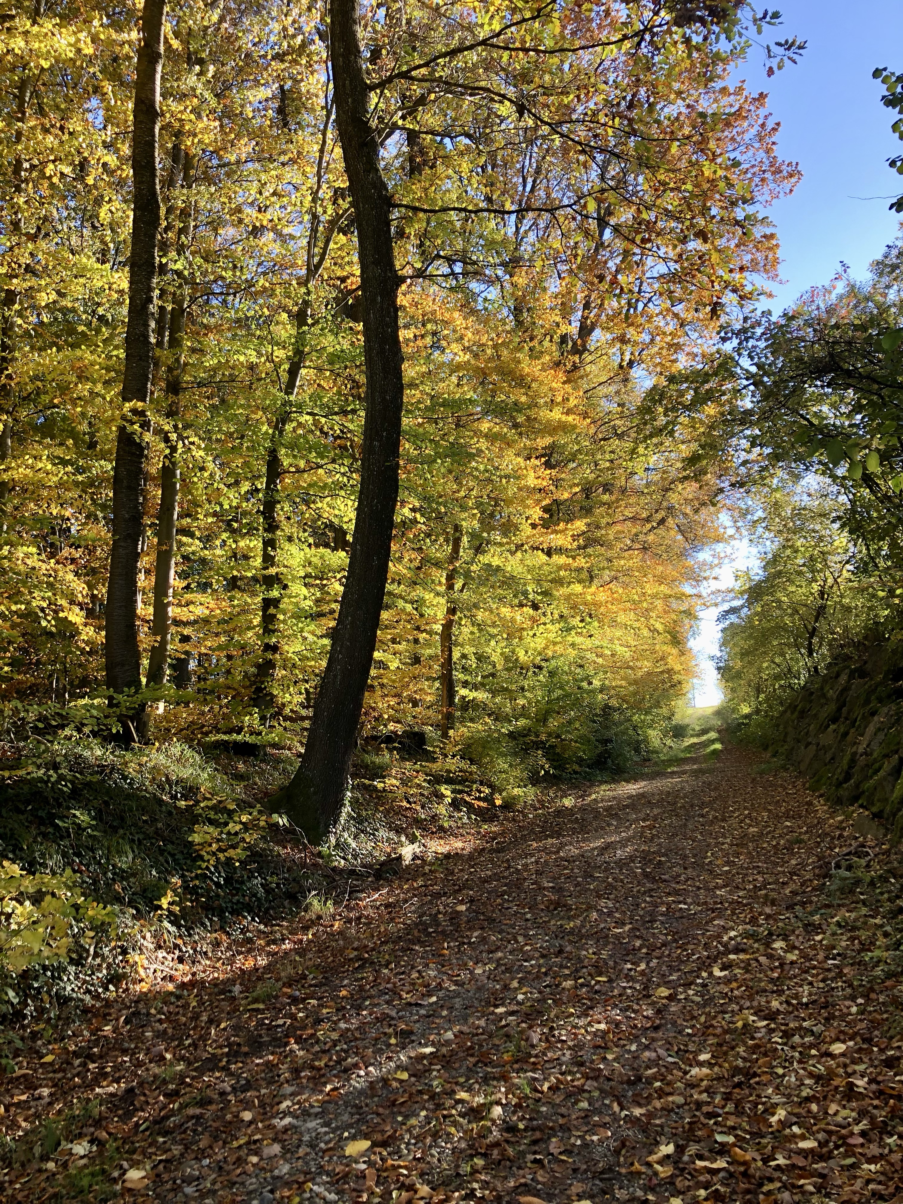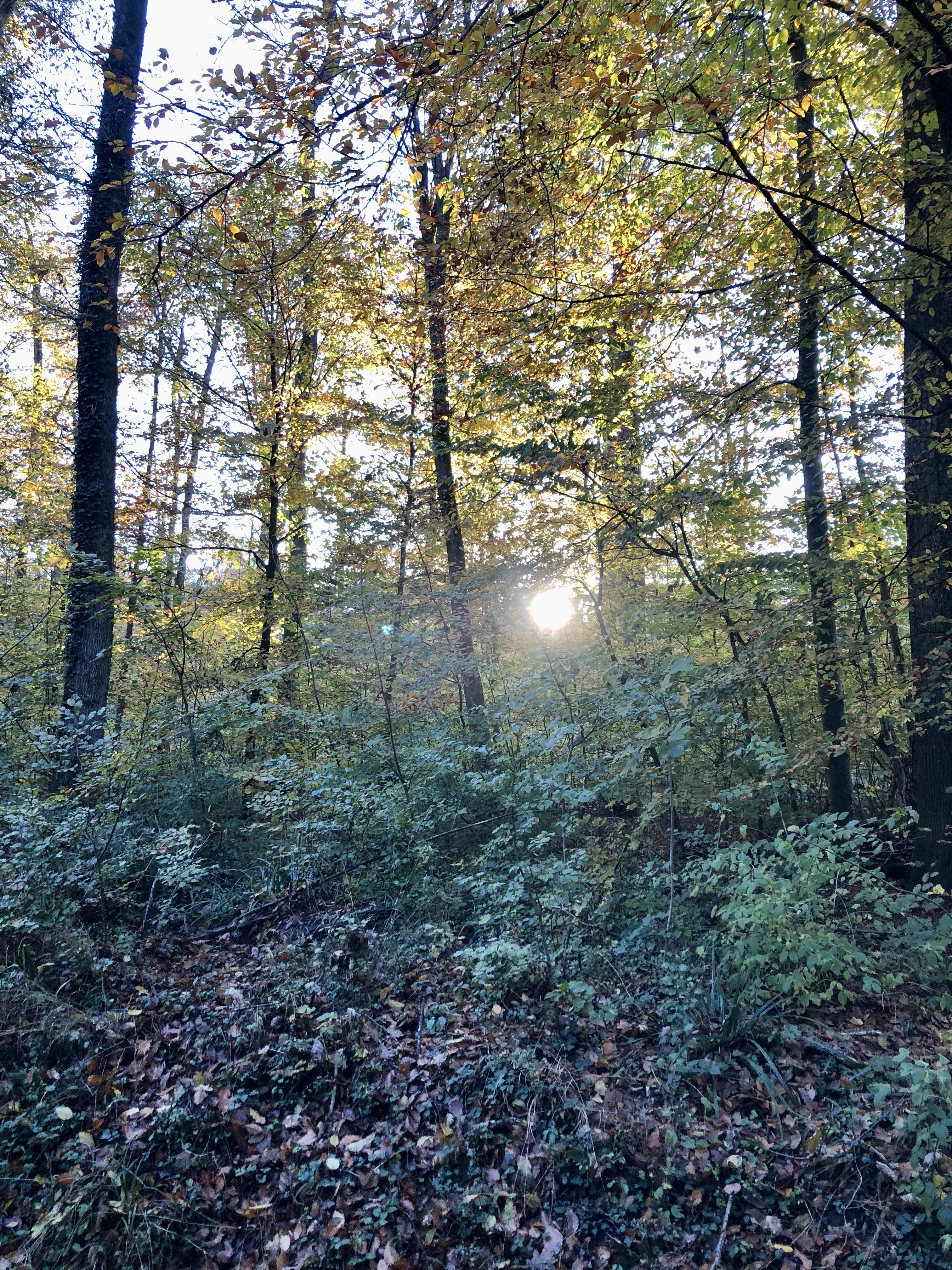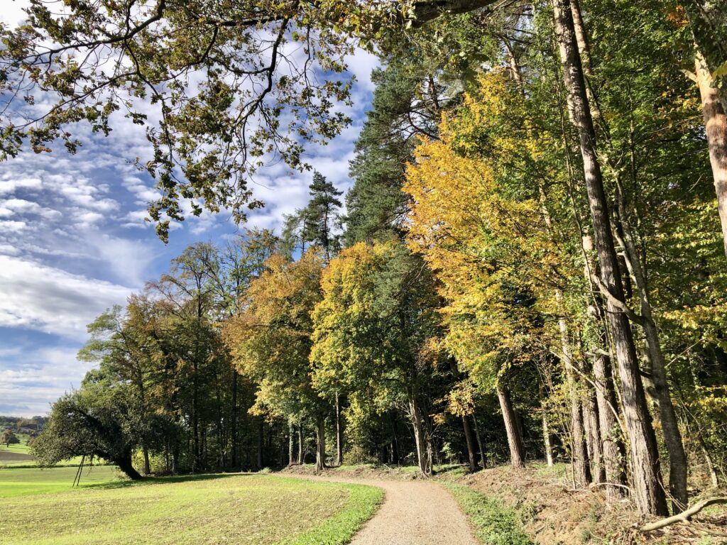 Die erwartete Herbstfärbung lässt dieses Jahr auf sich warten. Noch immer sind die goldenen Bäume in unserer Gegend nicht zu finden. Doch das trockene Wetter und die gelegentlichen sonnigen Tage laden zu einem Spaziergang ein. Jetzt im Herbst wird – anders als im Sommer – der Waldrand zum Laufen bevorzugt.