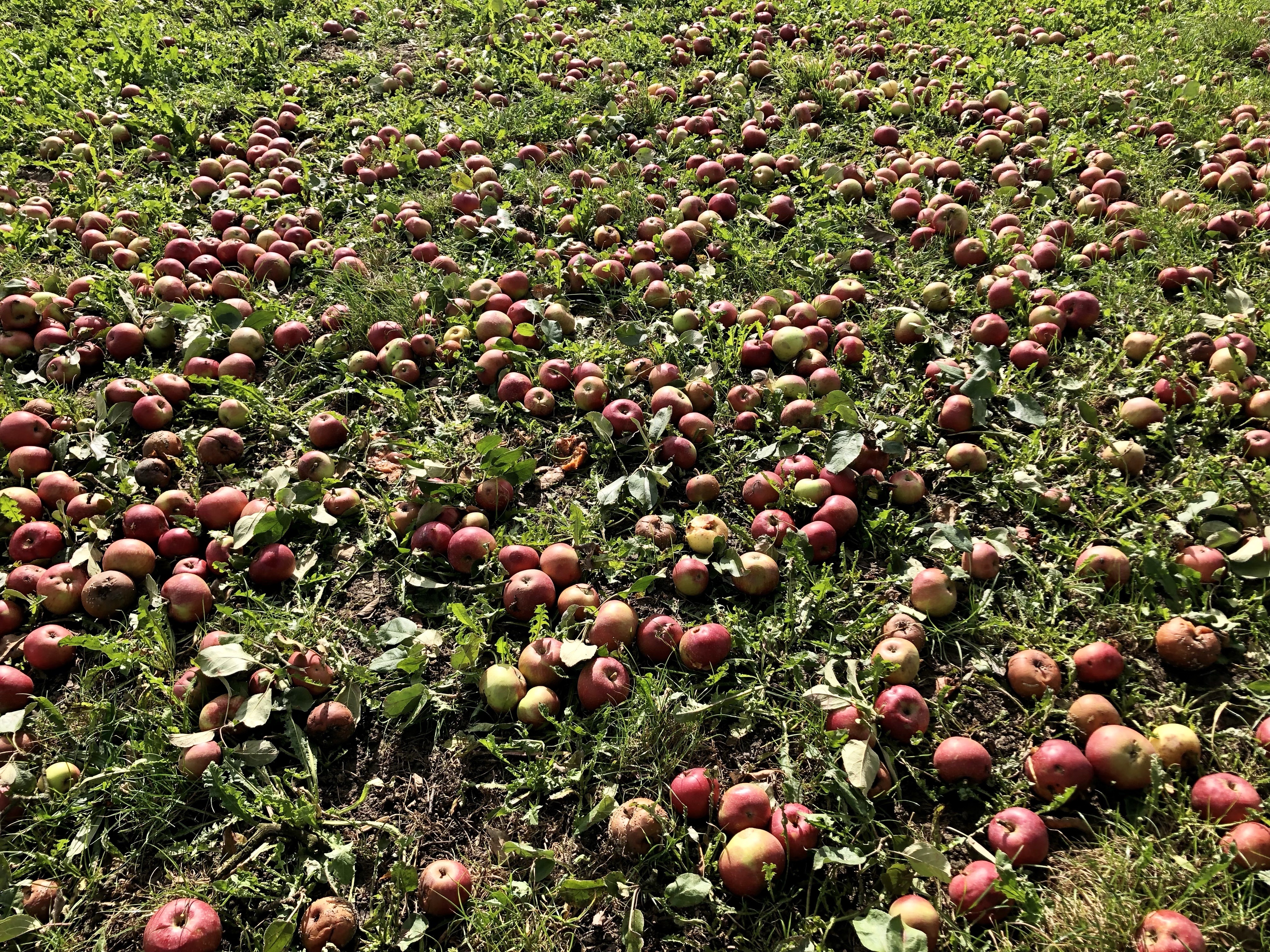 Warum so viele Äpfel ungenutzt am Boden liegen, ist mir ein Rätsel – sie würden sicherlich einige Liter Apfelsaft geben.