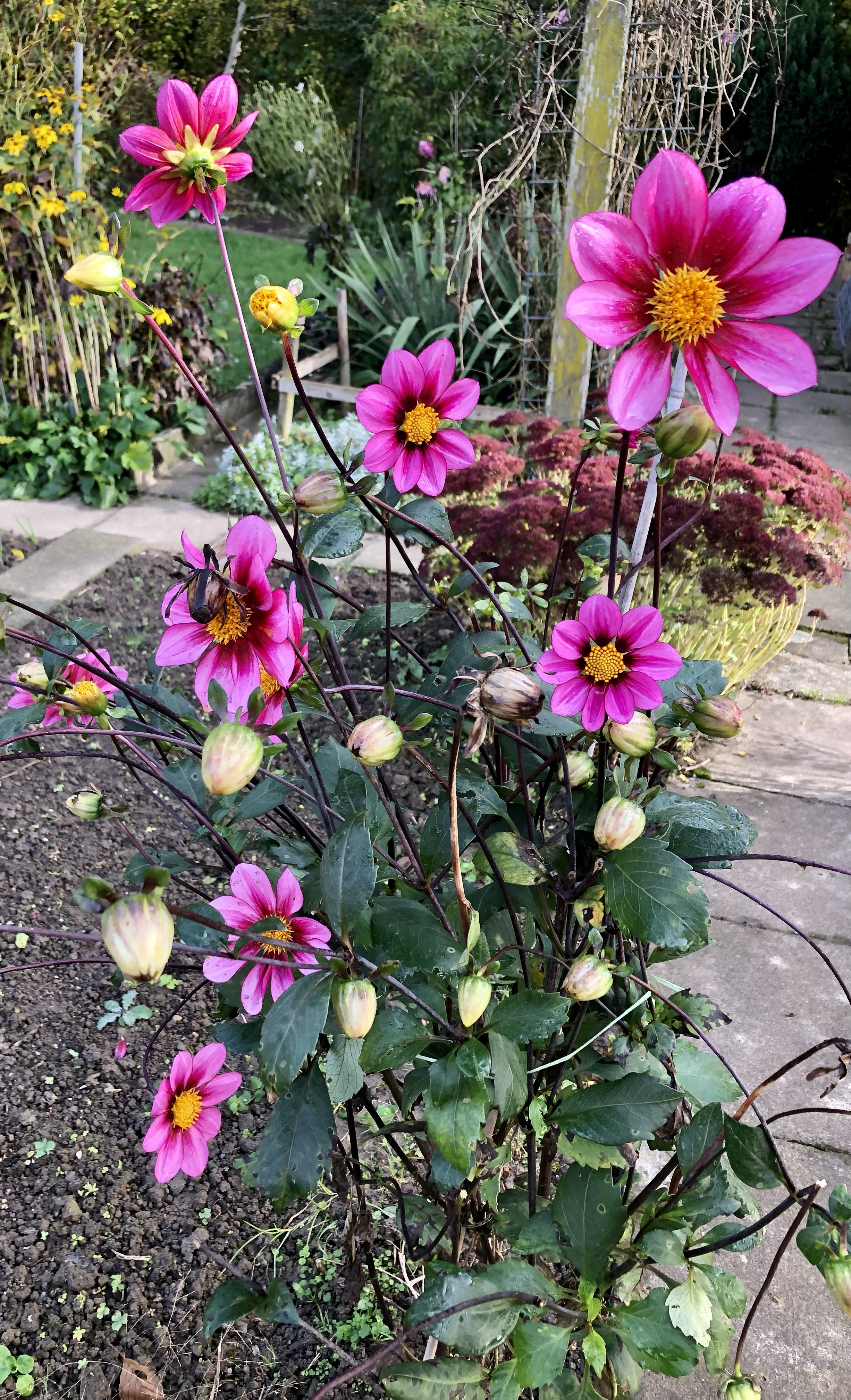 Diese Dahlien werden noch von Bienen und Hummeln besucht.