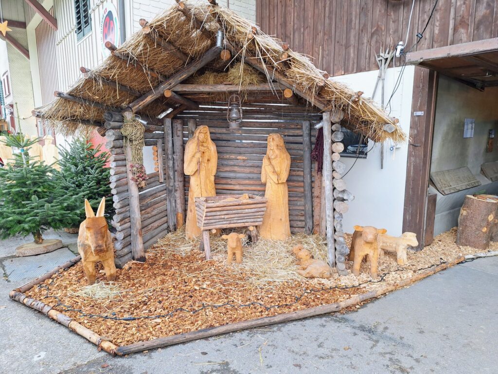 Die lebensgrosse, geschnitzte Krippe steht jedes Jahr in unserer Nachbargemeinde und erfreut die Besucher.