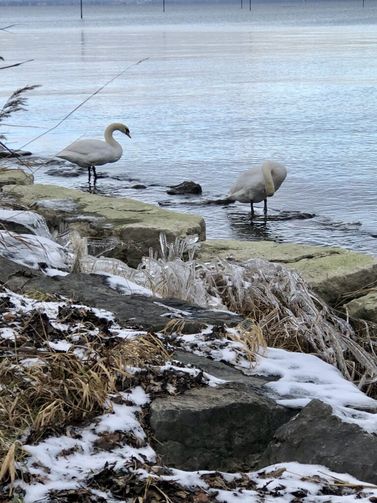 Die Schwäne im kalten Wasser, die unbeirrt ihre Bahnen zogen, waren ein faszinierender Anblick. Trotz der Kälte schwammen sie elegant im See.