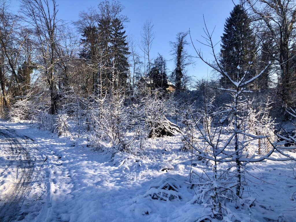 Es war kalt, richtig kalt, aber nach langer Zeit schien die Sonne wieder einmal bei uns am See und lockte mich, warm eingepackt, zu einem Spaziergang. Keine weite Wanderung, sondern ein gemütlicher Rundgang in der Nähe – ich nehme euch gerne mit. Bei den anhaltenden Minusgraden blieb der Schnee diesmal länger liegen.