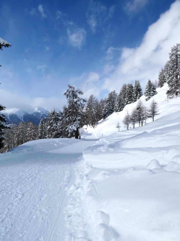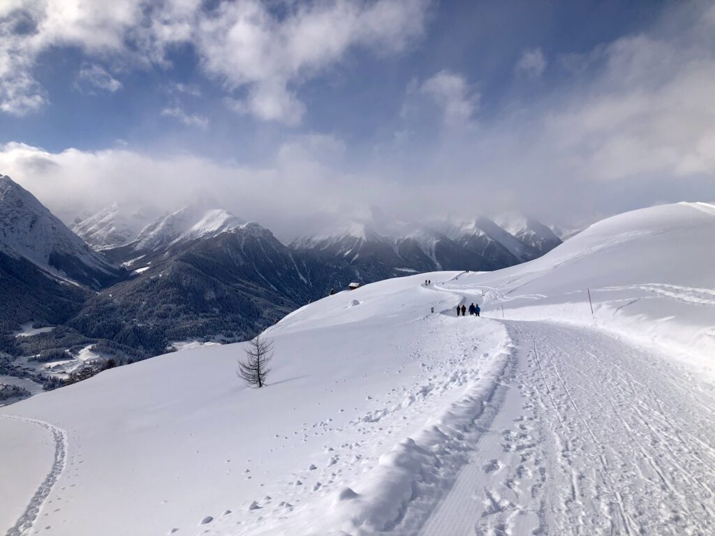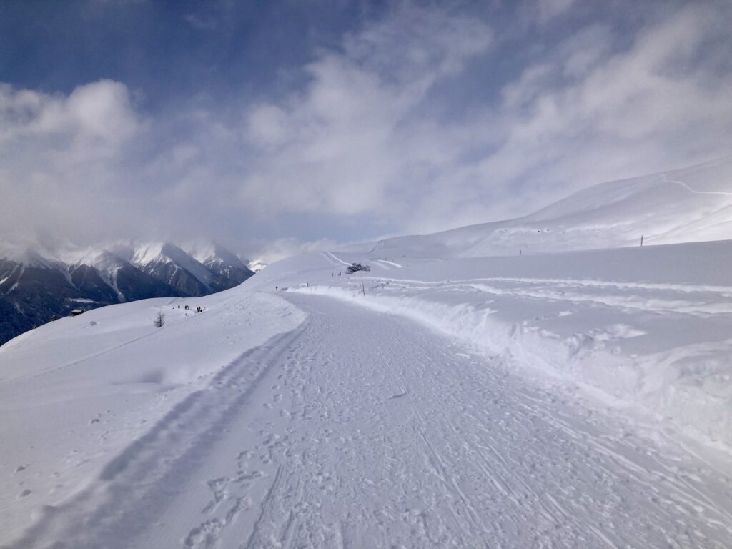 Heute lade ich euch zu einem Panoramaspaziergang auf dem Flurinaweg ein. Die Route beginnt an der Bergstation Motta Naluns und führt nach Prui. Auf dieser rund 2 km langen Strecke, die sich auf über 2.000 Meter über Meereshöhe am sonnigen Hang des Unterengadins entlangzieht, eröffnen sich atemberaubende Ausblicke auf das Tal und die Tiroler Berge im Osten.