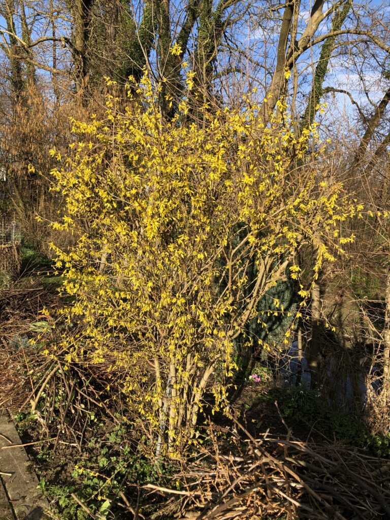 Die leuchtend gelben Forsythien sind schon von Weitem sichtbar.