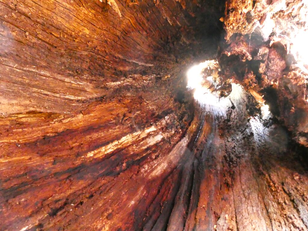 Auf einem der nächsten Bilder könnt ihr sehen, dass der Baum tatsächlich hohl ist; das Foto wurde in seinem Inneren aufgenommen.