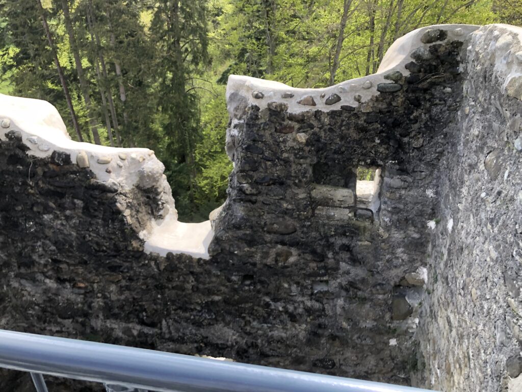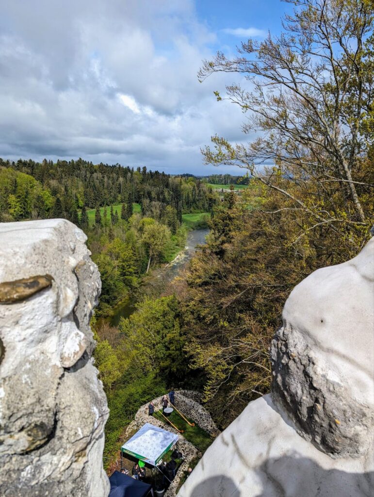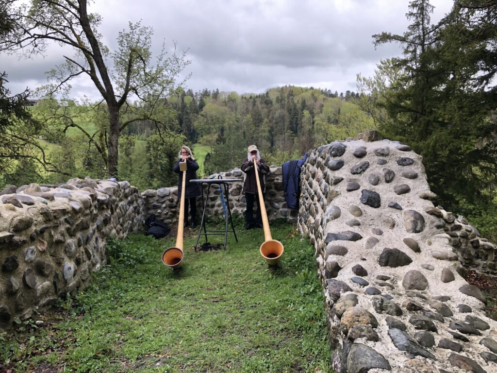 Im Innern der Ruine Ramschwag kann man nun bis ganz nach oben auf eine Plattform laufen. Bei kaltem, unwirtlichem Wetter wurde die Spindeltreppe im Turm für die Besucher*innen eröffnet. Bereits aus der Ferne waren die Klänge des Alphorns zu hören, die uns willkommen hiessen.