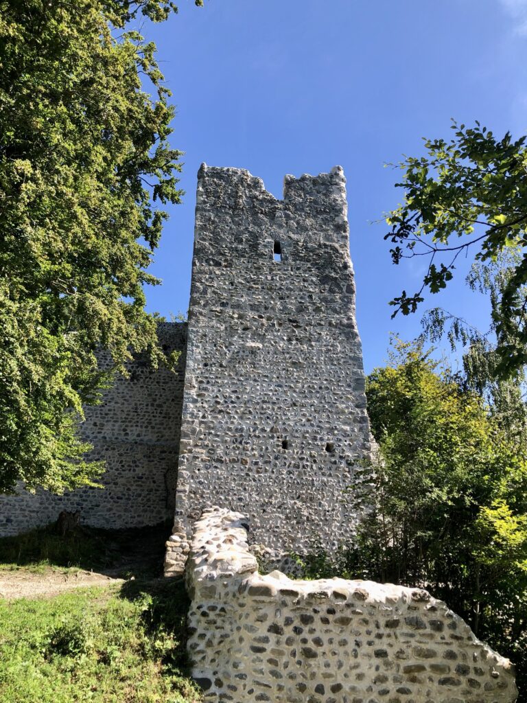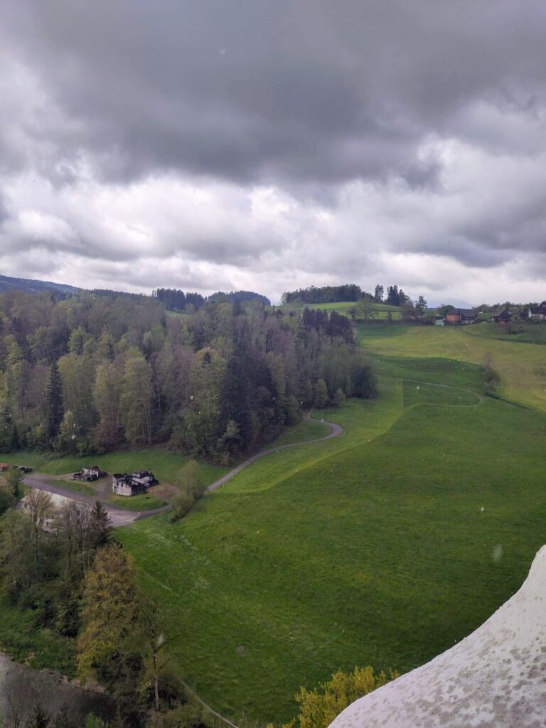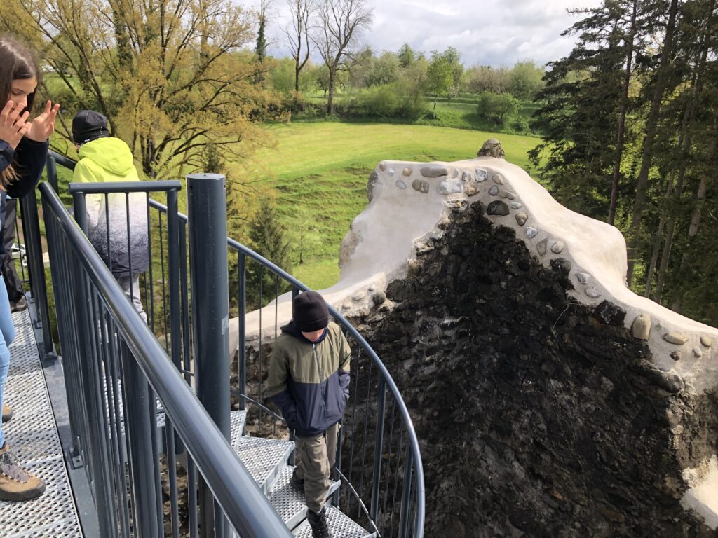 Denn im 1000-jährigen Turm ist eine Stahlspindeltreppe mit 74 Stufen eingebaut worden, die den Besucher*innen ermöglicht, in luftiger Höhe die prächtige Aussicht auf die Sitter sowie die umliegenden Wälder und Wiesen zu geniessen. Ein besonderes Geschenk erhielt mein Mann von unseren Töchtern: eine Stufe der Spindeltreppe. Überrascht und gerührt stiegen sie gemeinsam die Treppe hinauf, und als er seinen Namen auf der Stufe las, war er sichtlich stolz, auf dieser denkmalgeschützten Burg eine Stufe in seinem Namen zu haben.
