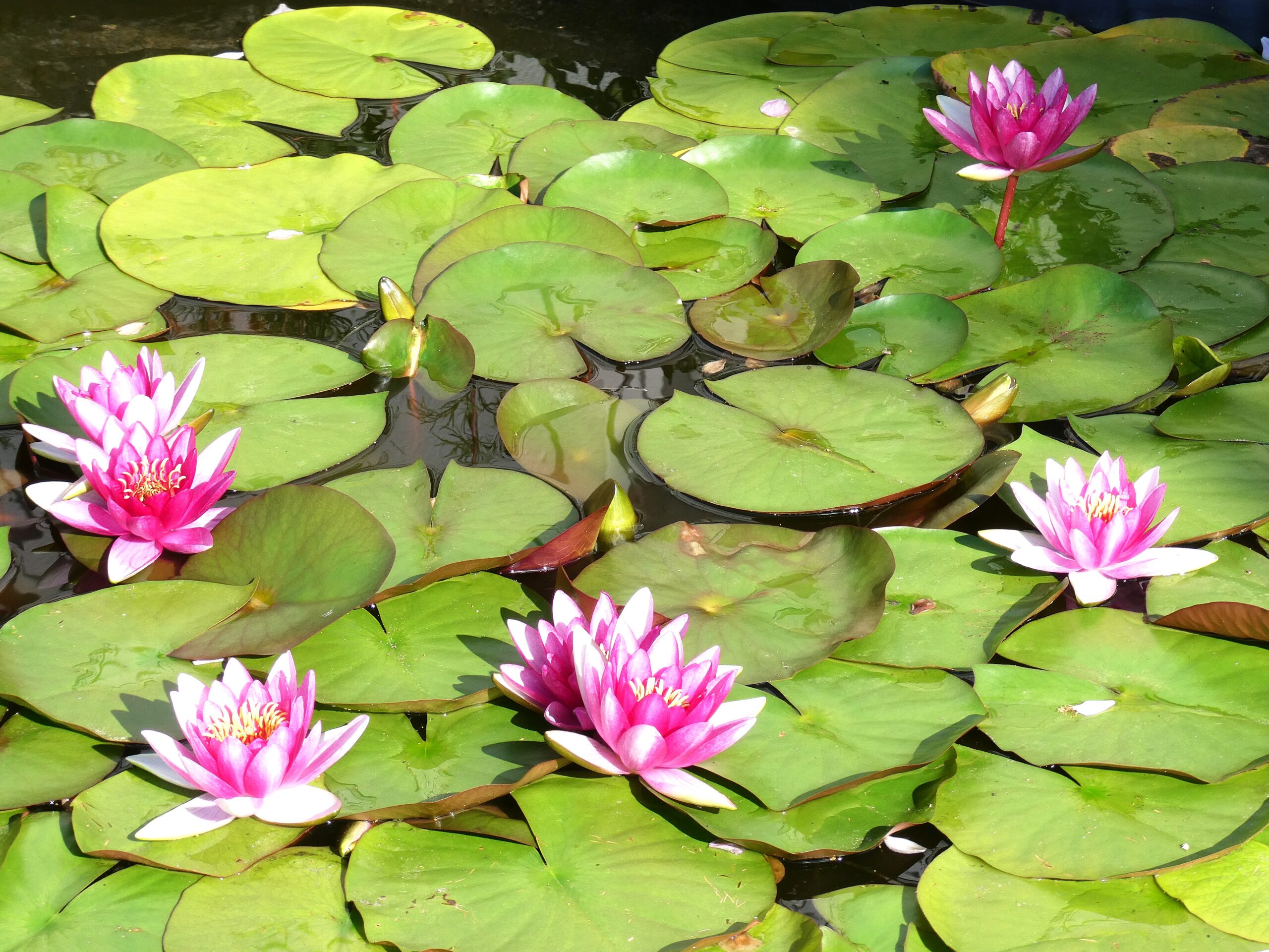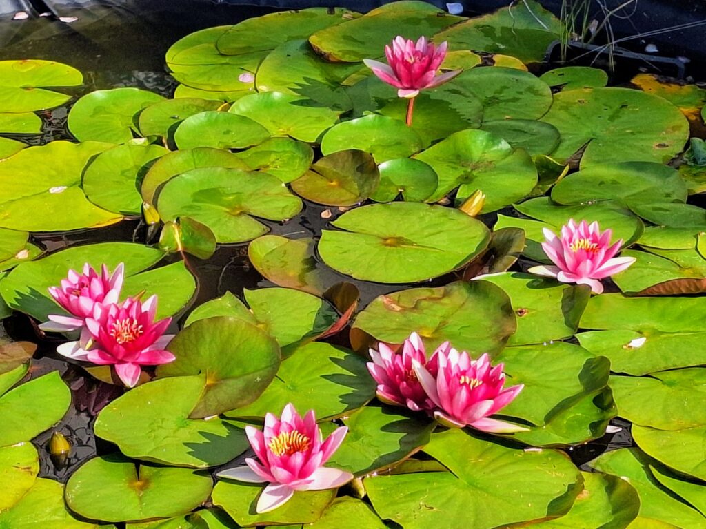 Ich glaube, unsere Seerosen haben noch nie so schön und in so grosser Zahl geblüht wie in diesem Sommer. Täglich öffnen sich neue Blüten, und es ist ein wahres Spektakel. Unser Teich, der an der Grundstücksgrenze zur Strasse liegt, zieht immer wieder Spaziergänger an, die am Teichrand stehen und die Blütenpracht bewundern.