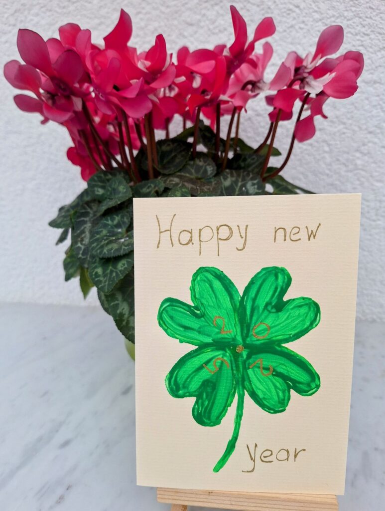 Dein gemaltes Kleeblatt schaut wunderbar aus, es soll Dir viel Glück bringen.