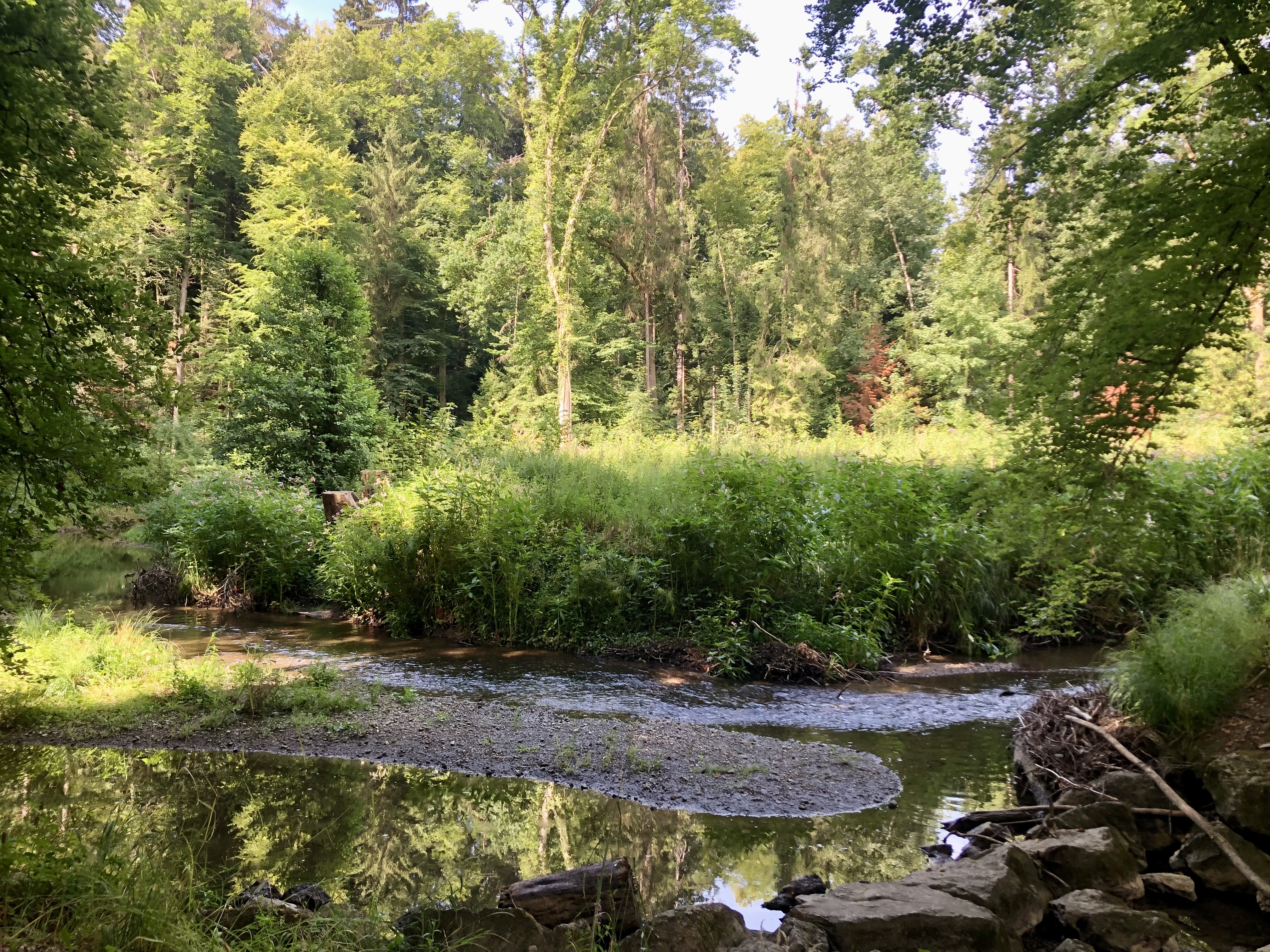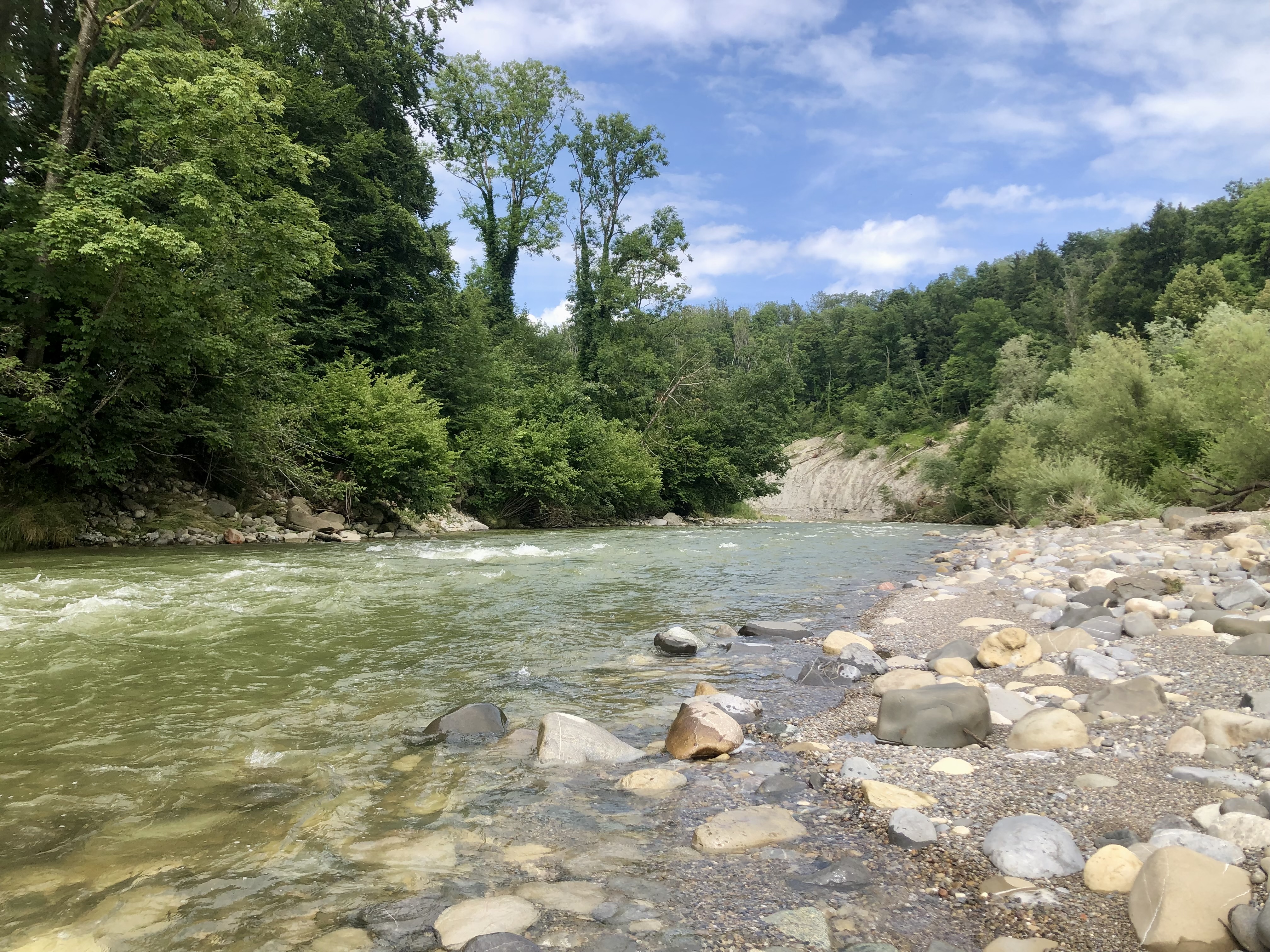 Der viele Regen in diesem Sommer hat durchaus auch seine schönen Seiten. Bei unserem Ausflug an die Sitter war der Lärmpegel deutlich höher als noch im Frühjahr.