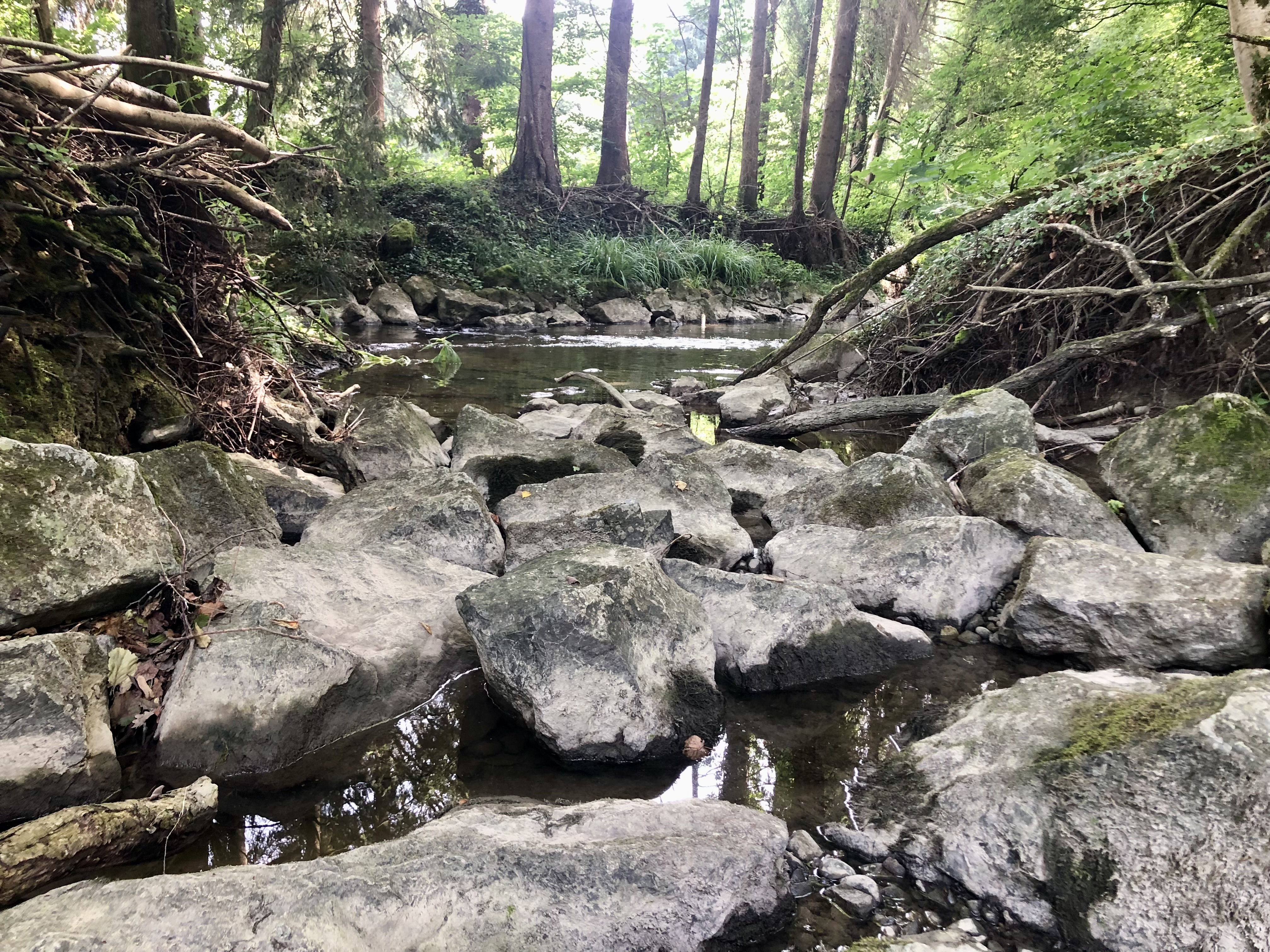 Umso schöner ist es, die lichten Stellen im Bachlauf zu entdecken. Und weil die Sonne jetzt schon tiefer steht im Spätsommer, ist der Lichteinfall fast Magisch.