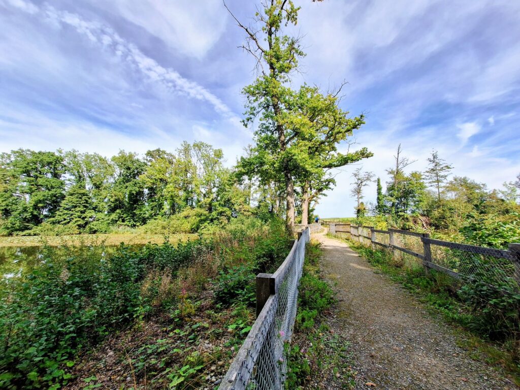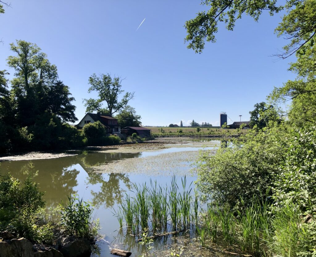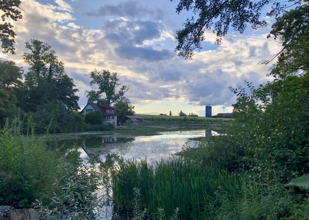 Es gibt verschiedene Wege, die zum Weiher führen. Im Juni habe ich euch bereits einen anderen vorgestellt. Diesmal zeige ich euch den Weg vom See her, der an Bauernhöfen und Obstanlagen vorbeiführt.