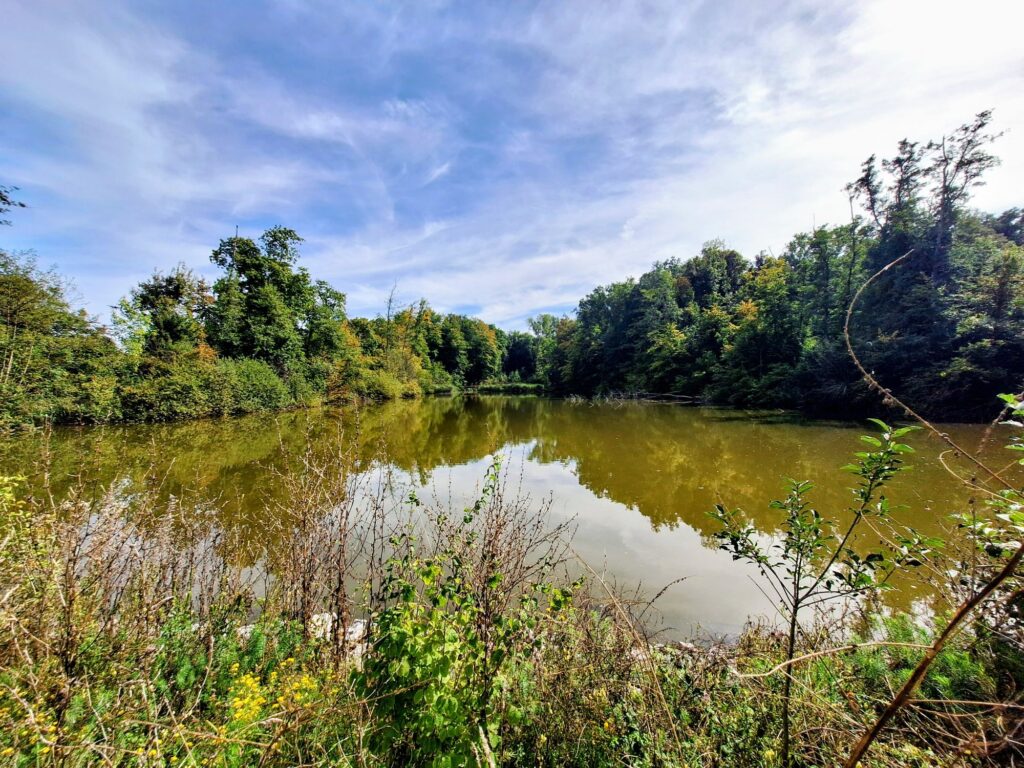 Dieser Weiher ist einfach ein wunderschöner Ort, immer noch grün, aber den Herbst kann man trotzdem schon erahnen und immer wird die Wasseroberfläche von einem tollen Himmel beschirmt, ganz wie es sich gehört für dieses besondere Fleckchen Erde.
