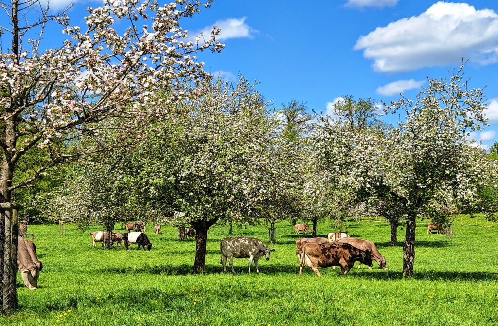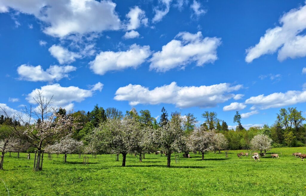 Noch schöner ist es, wenn Kühe auf der Weide stehen und den Schatten der Bäume suchen. Das ist Idylle pur und erfreut beim Fotografieren das Herz. Viele Menschen kennen solche Bilder nur noch von Fotos. Darum bin ich immer wieder dankbar und glücklich, dass wir das noch ganz real sehen und erleben dürfen. Und wenn ich mit den Enkelinnen unterwegs bin, zeige ich ihnen besonders gerne, wie wunderbar unsere Natur ist.