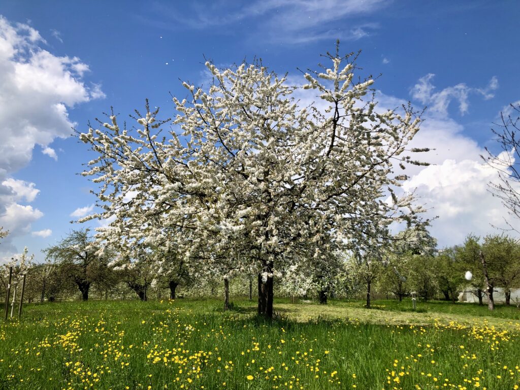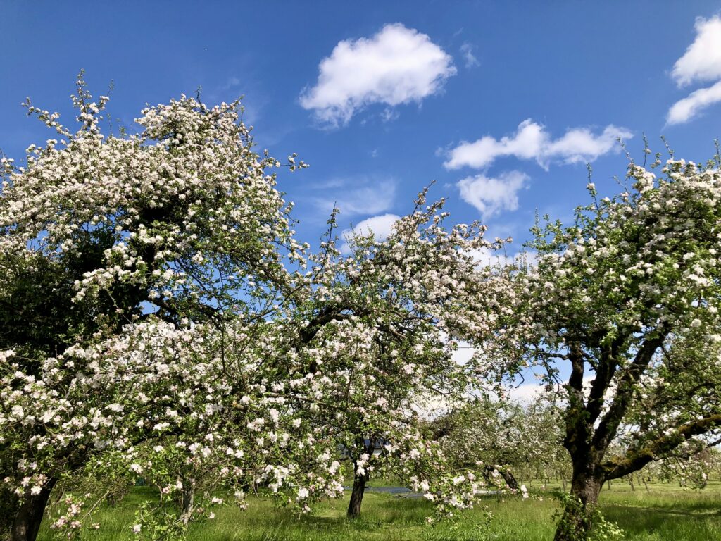 Zurzeit lohnt es sich ganz besonders, mit dem Fahrrad durch die nähere Umgebung zu fahren. Die Obstbäume stehen in voller Blüte und verwandeln die Landschaft in ein wahres Blütenmeer.