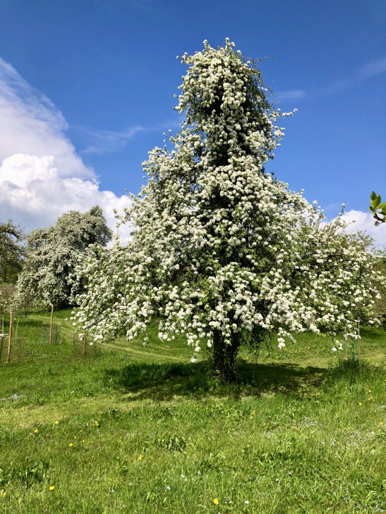Am besten gefallen mir die alten Hochstammbäume. Bei uns gibt es fast nur noch Birnbäume als Hochstamm. Offenbar lohnt es sich heute nicht mehr, die Wasserbirnen von Hand aufzusammeln und in die Mosterei zu bringen.