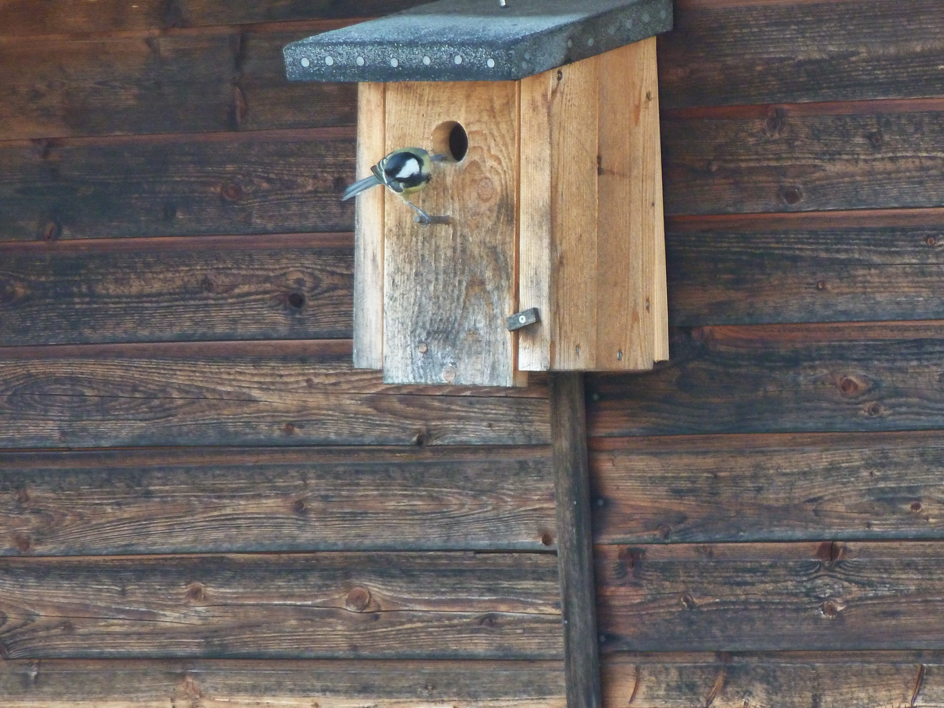 Wie schon in den letzten Jahren ist unser Nistkasten zur Zeit bewohnt. Es war schön mit anzusehen wie das Meisen Vogelpaar seine Wohnung herrichtete. Wir konnten ein emsiges Hin- und Herfliegen mit Nistmaterial im Schnabel beobachten.