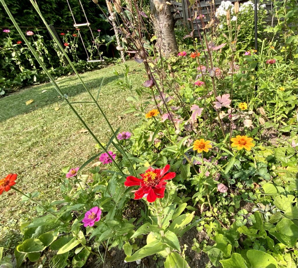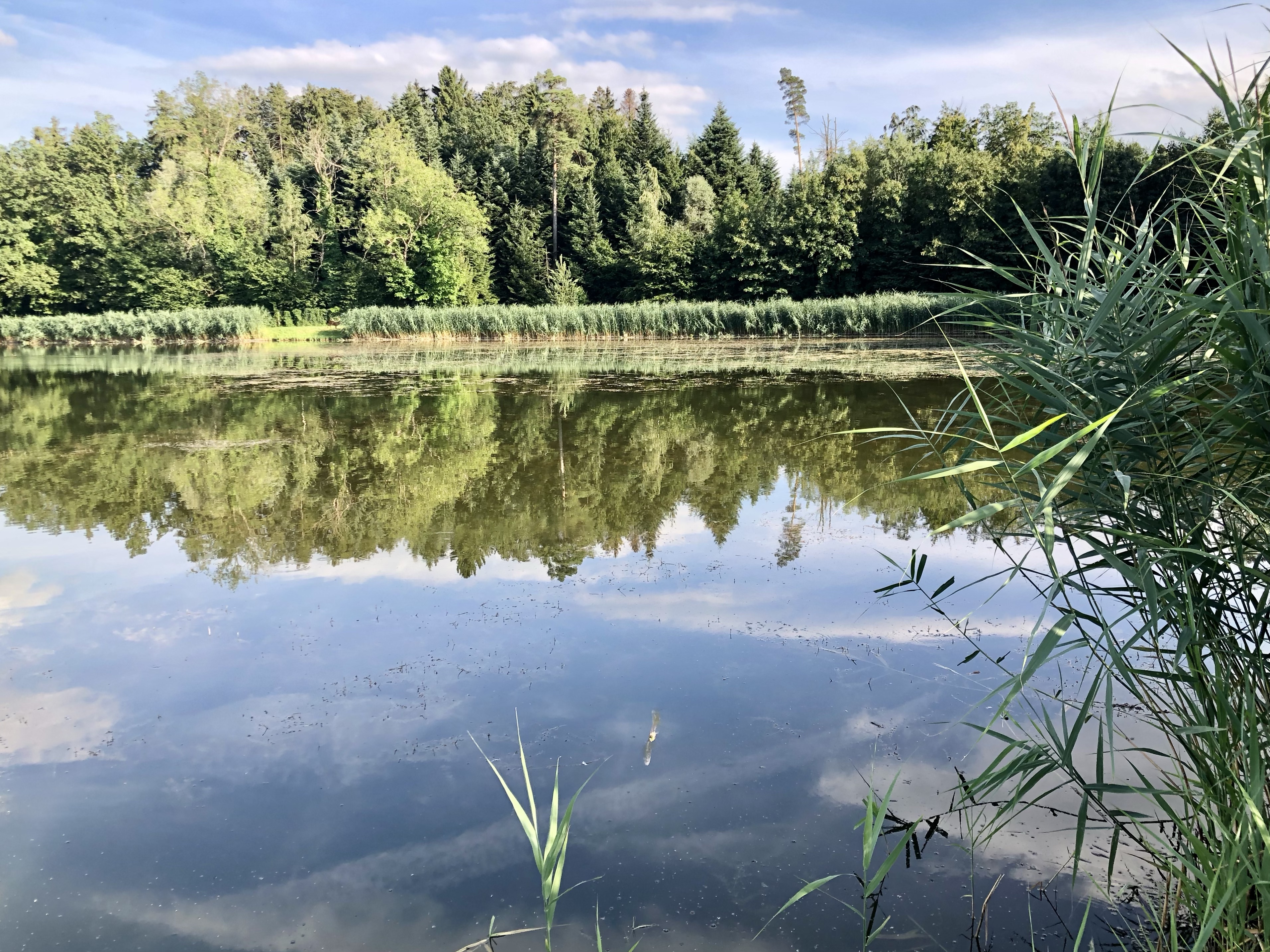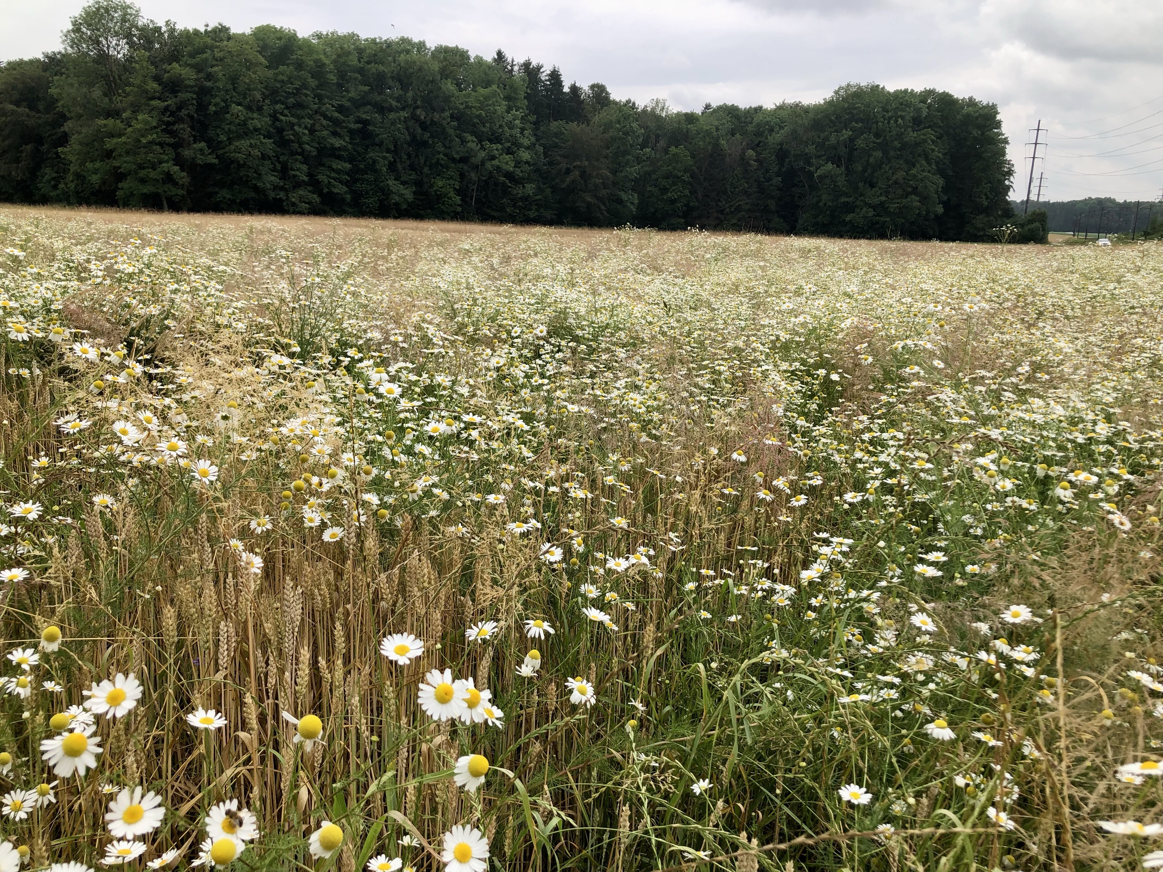 Der Juli fing bei mir traurig an, mussten wir uns doch von einem lieben Familienmitglied verabschieden. Ganz plötzlich und unvorbereitet hörte das ❤️von meinem Bruder auf zu schlagen. Da sind die Tage mit den Enkelinnen eine gute Ablenkung. Der Juli war ein Hitzemonat und viel zu trocken. In den letzten Tagen kam bei uns der lange ersehnte Regen und brachte eine Abkühlung für Mensch und Natur. Wir können fleissig aus dem Garten ernten, Zucchini und Gurken gibt es im Überfluss und Buschbohnen konnte ich schon einige Kilos einfrieren. Die Beeren kochte ich zu Konfitüre für den Vorrat. An den heissen Tagen ist es am schönsten mit dem Velo im Wald unterwegs zu sein und Rast an einem Weiher zu machen. Mit der grossen Enkelin haben wir zusammen Bananenmuffin gebacken. Das veränderliche Wetter der letzten Tage ersparte uns das Giessen und endlich kann man wieder lüften.