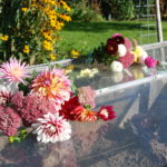 Der letzte Sommermonat geht zu Ende und macht seinem Namen alle Ehre mit Badewetter und Sonnenschein. Aber endlich regnete es auch bei uns ausgiebig, was die Natur und den Garten freut. Von der Ernte aus dem Garten kochte ich fleissig ein für den Wintervorrat. Den ersten Zwetschgenkuchen genossen wir auch schon. Um einen Sommerabend am See zu verbringen gab es genügend Gelegenheiten. Den Toskanischen Brotsalat und viele weitere Mahlzeiten wurden auf der Terrasse genossen. Mit dem Velo besuchte ich in der Nachbarstadt die Ausstellung Strickweg. Das Gewitter an der Aufführung WasserLand schmälerte nicht unser Vergnügen. Zum Glück hatten wir für den Buchtgotterdienst herrliches August Sommerwetter. Ich hoffe, ihr drückt mir alle die Daumen, dass sich aus der schönen Raupe am Karottenkraut ein Schwalbenschwanz entpuppt.