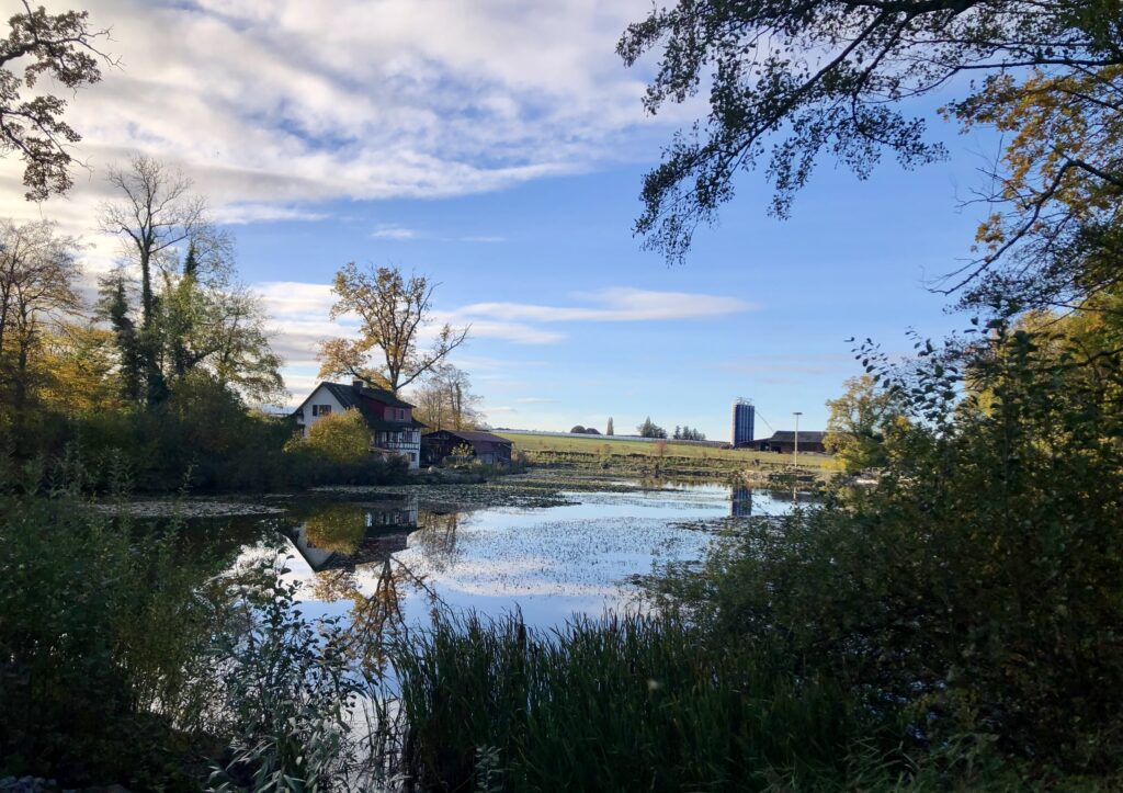 Ich hatte gehofft, euch den goldenen Oktober am Weiher zeigen zu können. Doch an den sonnigen Tagen, wenn ich dort vorbeikam, zeigte sich die Herbstverfärbung immer nur ausserhalb meines Blickwinkels. Ich hätte meinen Standort wohl besser etwas weiter nach Westen verlegen sollen!