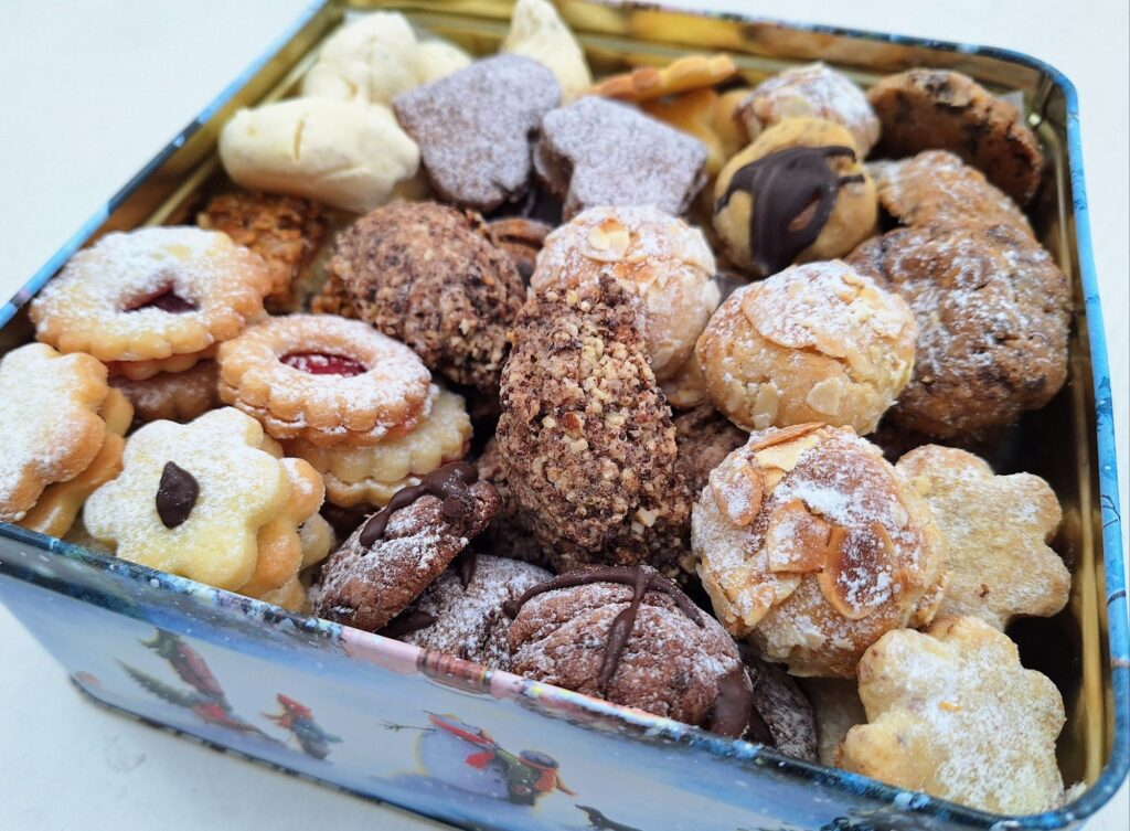 Gebacken habe ich dieses Jahr wieder alleine, stimmt nicht ganz, denn ich konnte auf die Hilfe meines Mannes zählen. Ich habe unsere beliebten Sorten gemacht. Experimente, wie in anderen Jahren, gab es diesmal keine. Ich war einfach froh, rechtzeitig fertig zu werden. Auf schön präsentierte Fotos wie in den Vorjahren musste ich ebenfalls verzichten, das war immer der Part meiner Tochter bei unseren gemeinsamen Backtagen.