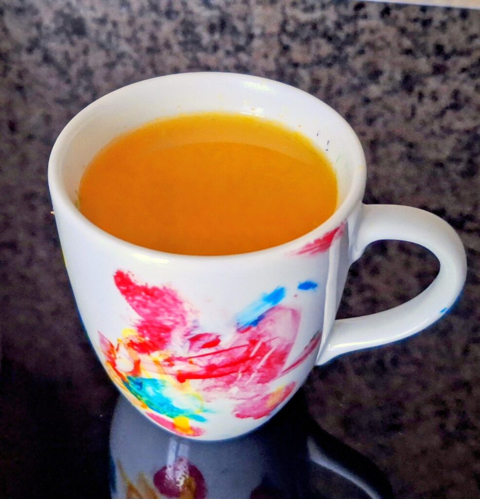 Und aus der Tasse, die unsere grosse Enkelin für mich verziert und mir geschenkt hat, schmeckt mein selbstgemachter Vitamintrank gleich noch ein bisschen besser!