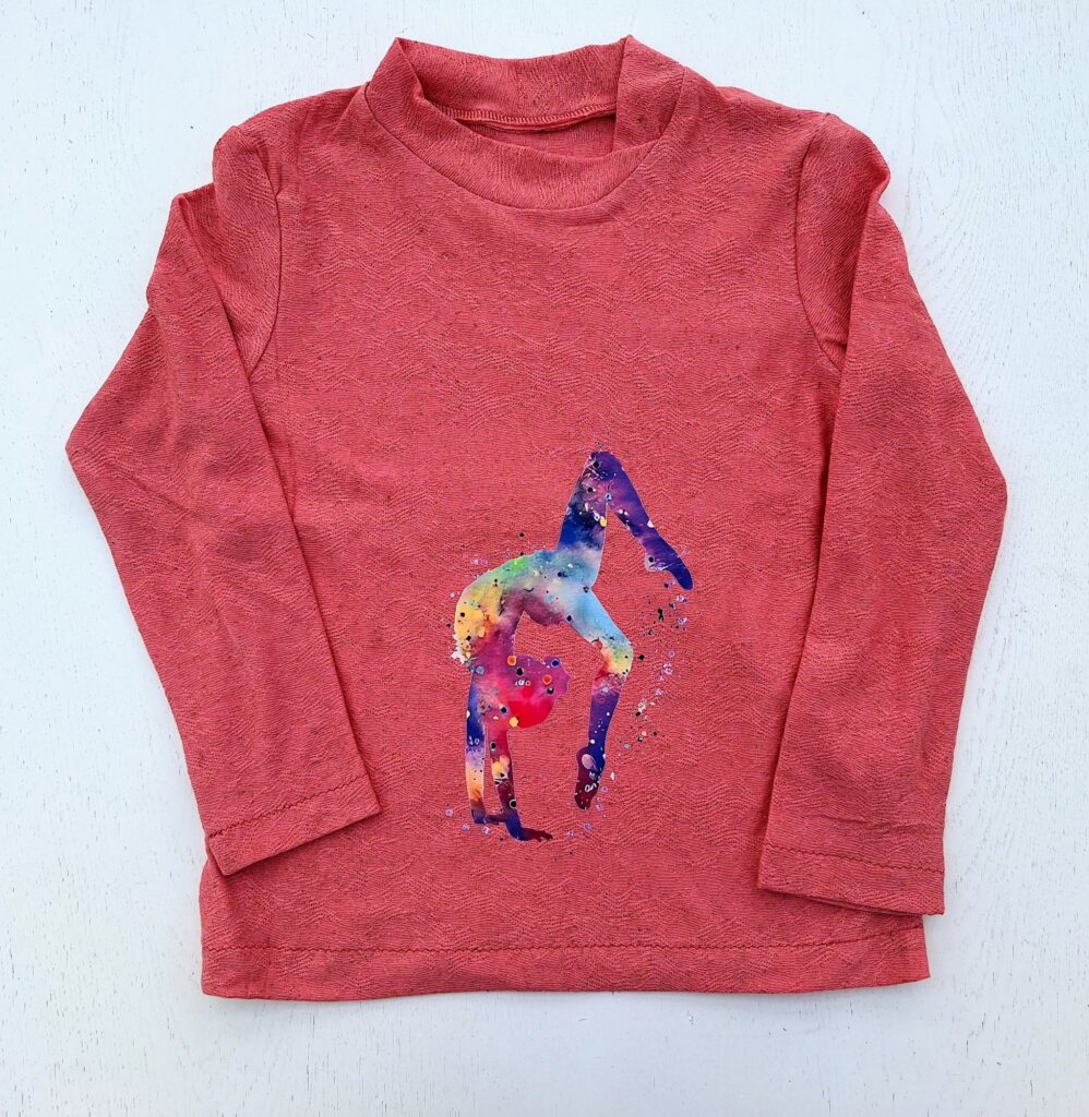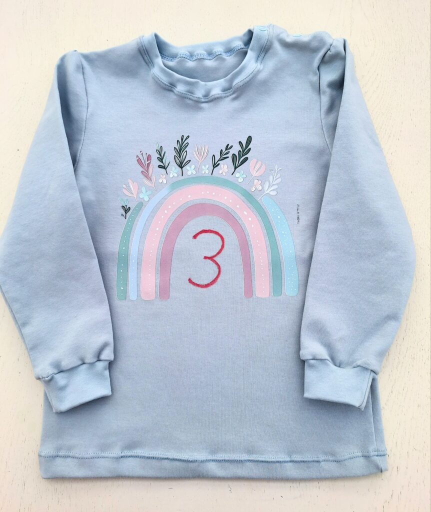 Im März wurde auch wieder genäht, was nötig war, denn die Enkelinnen wachsen so schnell. Natürlich gab es für die kleine Enkelin ein Geburtstagsshirt, und sie hat sofort erkannt, dass das jetzt ihre Zahl ist. Bei uns gab es im März bereits an vielen Tagen warme Temperaturen im zweistelligen Bereich. Dafür sind leichte, langärmlige Shirts aus mercerisierter Baumwolle ideal. Die grosse Enkelin bewegt sich fast schon so grazil wie die Figur auf dem Bügelbild.