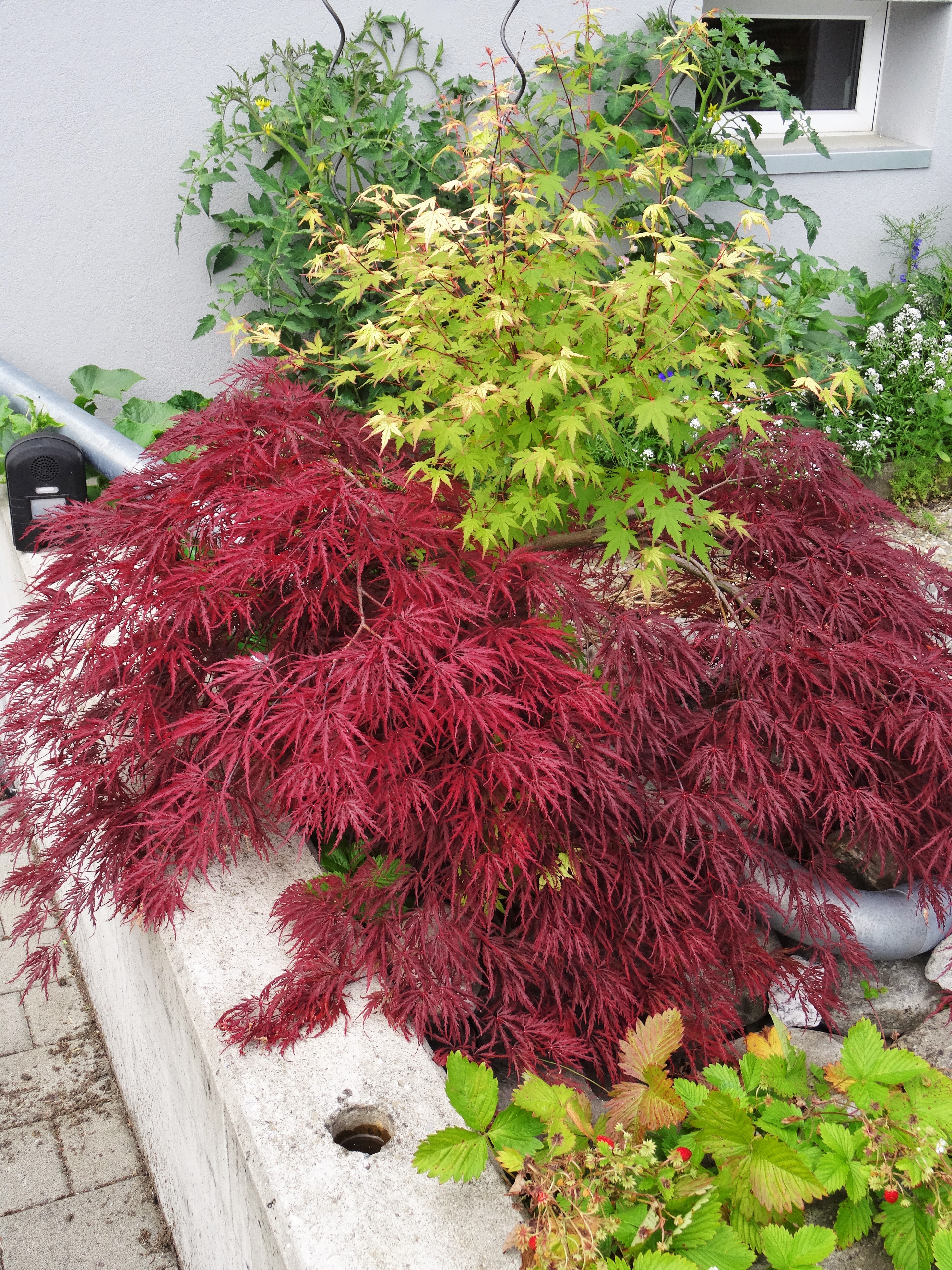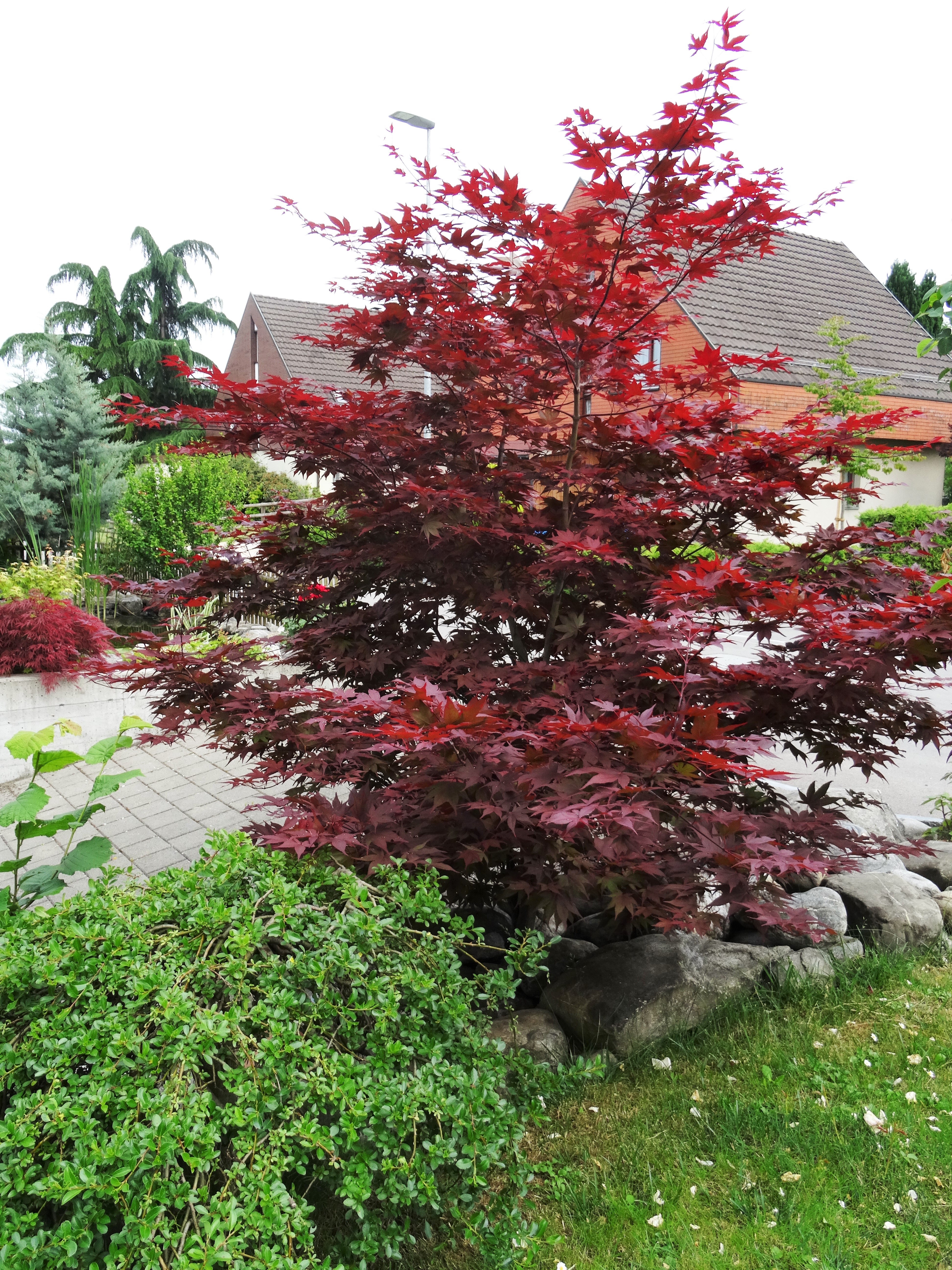 Der rote Ahorn ist ein schöner Farbtupfer vor dem Haus.