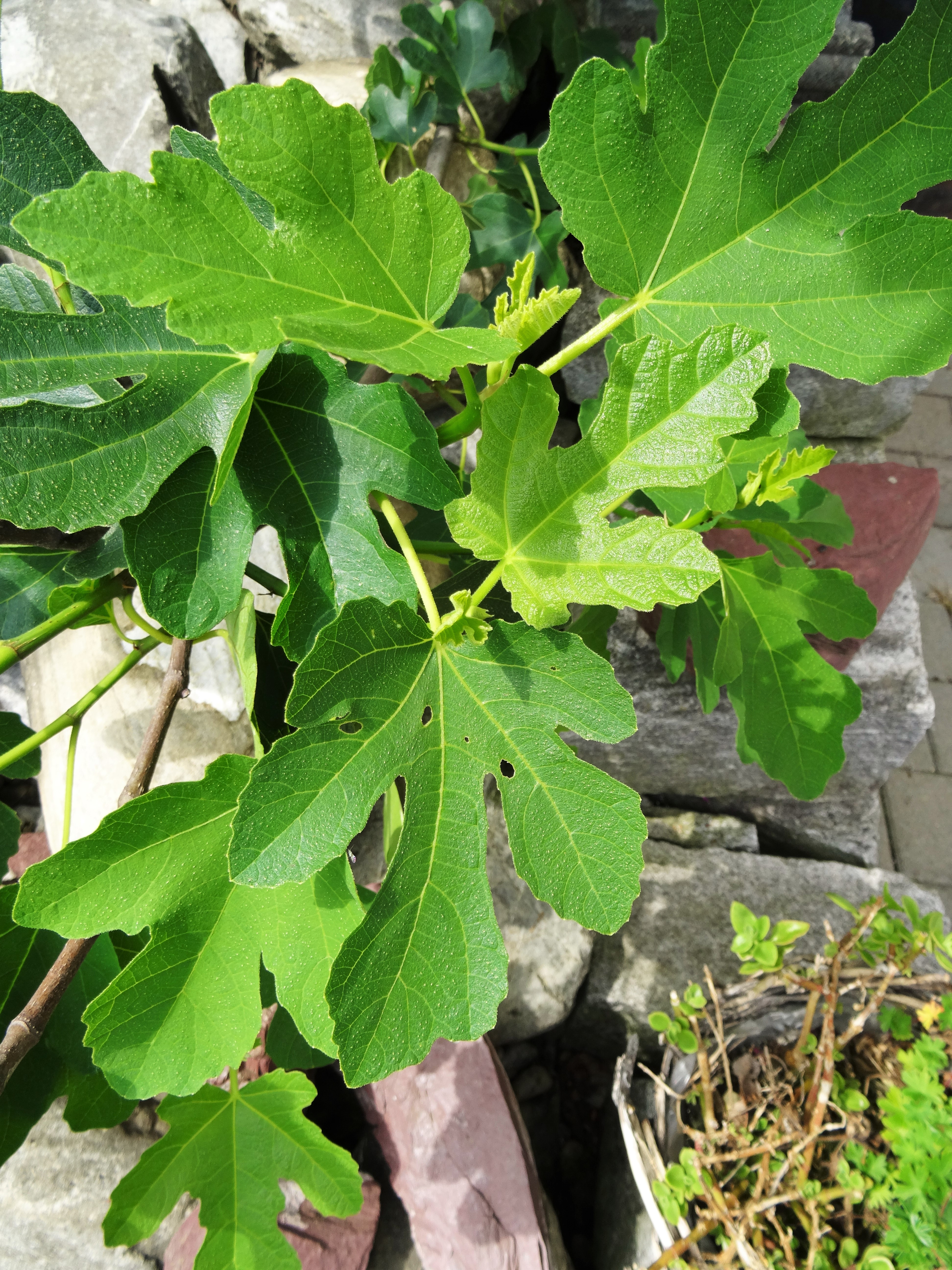 Auch sehr beliebte Blätter sind die grossen vom Feigenbaum. Früchte hatte der Baum noch nie, aber er steht am richtigen Ort, um die Sicht in unseren Garten zu verdecken.