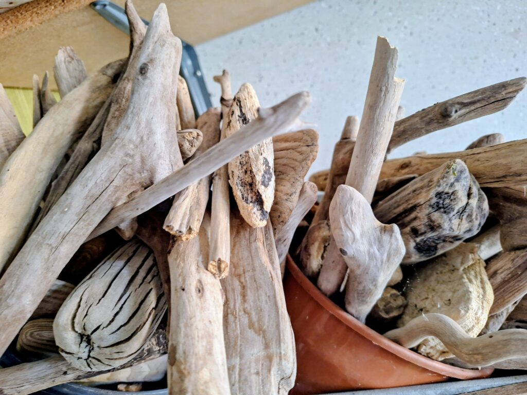 Zu Hause habe ich dann einige getrocknete Schwemmholzstücke herausgesucht