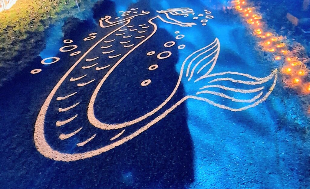 Wir waren begeistert, was mit Licht und Farbe möglich ist. Die Ausstellung ist unglaublich aufwendig gestaltet, und es ist ein Genuss, in der Dunkelheit über die Mainau zu spazieren – zur Ruhe zu kommen, durchzuatmen und sich verzaubern zu lassen. Andrea fragt uns, wo wir uns entspannt haben.