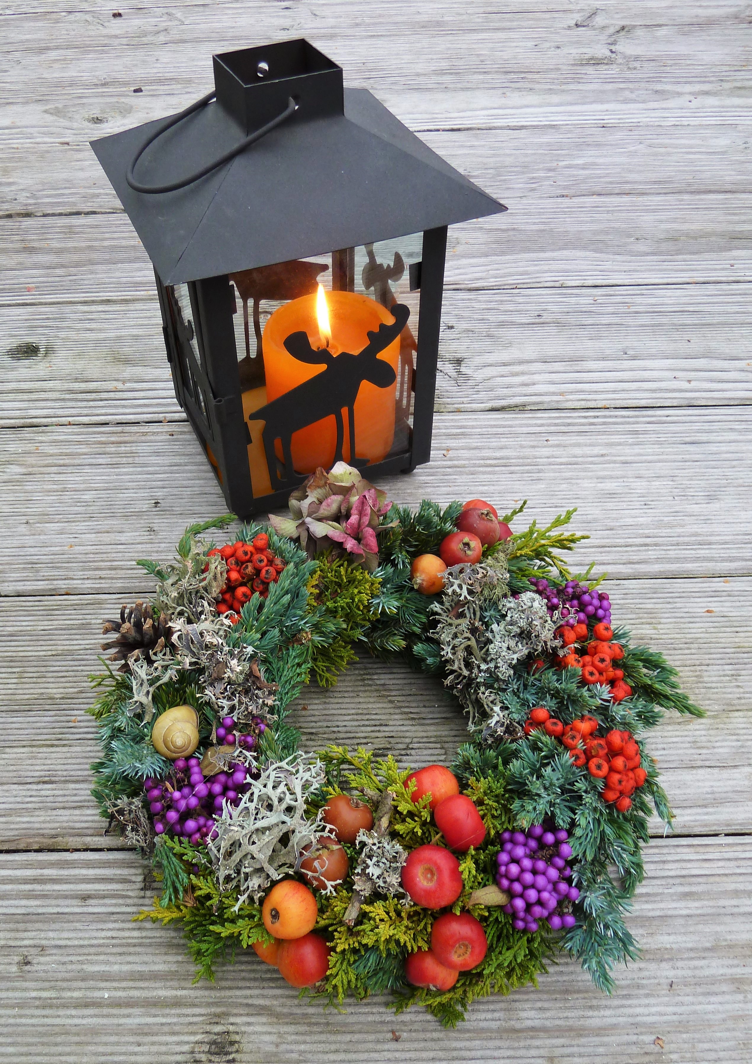 Dieser selbstgemachte Herbstkranz bekam ich von einer lieben Freundin geschenkt. Er wird meine Eingangstür verschönern. Jetzt ist auch wieder die Zeit des Kerzenlichts gekommen. Wenn es dunkel wird oder neblig ist, finde ich das Licht besonders schön und es wärmt auch die Seele.