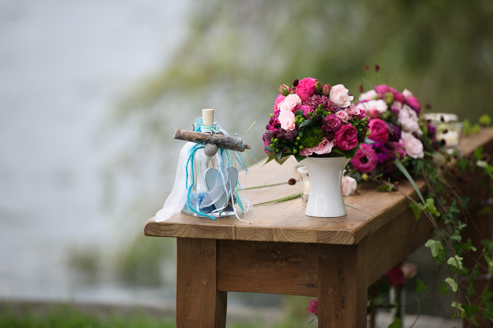 Am nächsten Tag, an der Hochzeitsfeier, wurde eine Flaschenpost mit persönlichen Glückwünschen für das Brautpaar auf die grosse Reise dem See übergeben. Wohin wurde sie wohl getrieben, vielleicht ins grosse weite Meer? Vielleicht erfahren wir es nie, aber ich hoffe, dass jeder einzelne Wunsch in Erfüllung gehen wird.