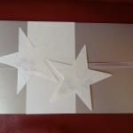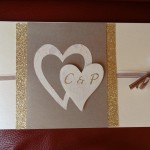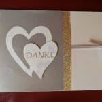 Seit dem 23. August ist auch das Geheimnis gelüftet,  warum die Karte die Farben Gold auf Ivory enthielt. Die Braut entschied sich schon sehr früh für ihr Kleid. Alle weiteren Brautkleideranproben konnten es nicht überbieten. Bei der ersten Anprobe vom Kleid kam der Gedanke ins Spiel, dass man für die Einladungskarten, Gesangsbüchlein und Menuekarten das Gold intergieren könnte. Der Gedanke erzeugte Gänsehaut und das edle Glitzern wurde bis heute durchgezogen. Auch beim Kauf des Anzugs vom Bräutigam war die Begleitung in das Geheimnis eingeweiht, dass es ein edler bronzebrauner Anzug sein soll.
