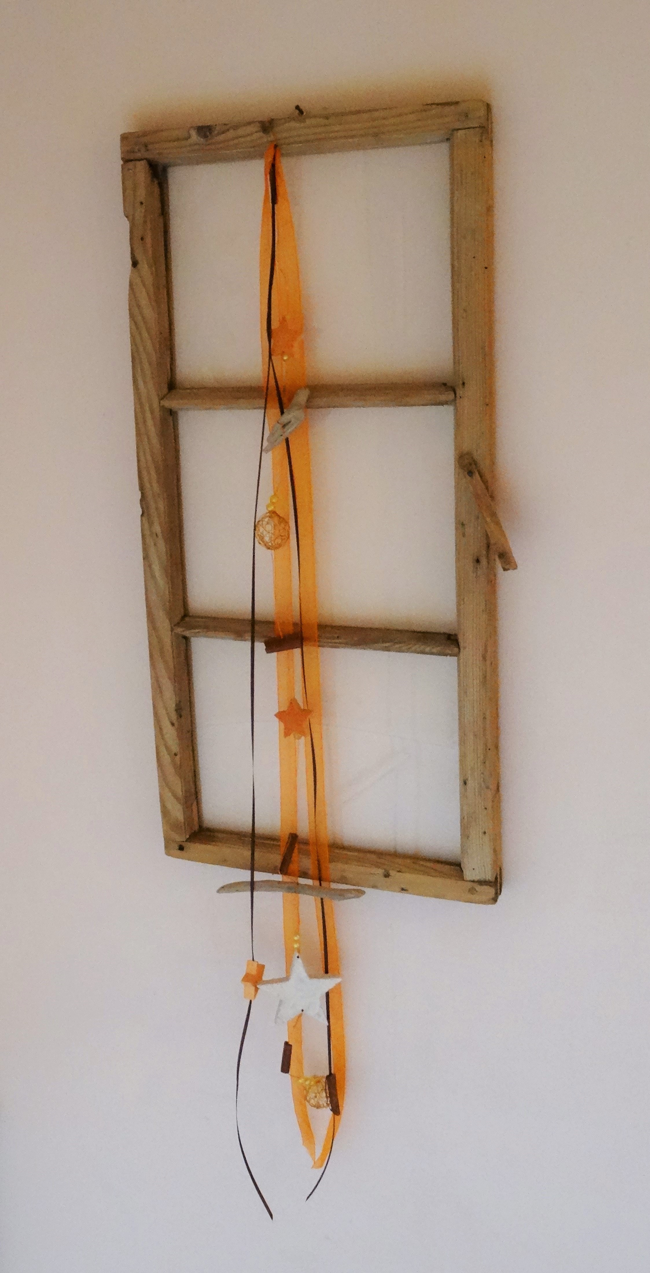 Mehrfach wurde ich von Ihm aufgeklärt, was für eine Handarbeit dadrin steckt. Verzapft sei der Rahmen. Es brauchte damals keinen Fensterkitt, weil das Glas in einer Nut liegt. Vielleicht nicht der gute Windschutz, den wir heute bei Fenstern beanspruchen. Immer wieder hat mein Mann mit Elan daran gearbeitet. Zuerst wurde das ganze zerlegt, dann fein säuberlich geschliffen und dann sorgfältig wieder zusammengebaut. Jetzt schmückt es in ganzer Pracht unseren Eingangsbereich. Bei der Dekoration ist sicher weniger mehr. Meine Vorstellung war, es als Fotorahmen zu benutzen. Mal sehen, was daraus wird.