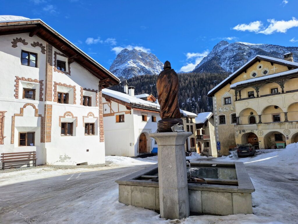 Unterwegs kommt man an einem Gebäude vorbei, das heute fast ein wenig vergessen wirkt, und doch einmal ein echter Tourismusmagnet war. Bis in die 1970er-Jahre wurde das Mineralwasser hier kommerziell genutzt und sogar bis nach London, New York und Sydney verschickt. Später änderten sich die Rahmenbedingungen: strengere Hygienevorschriften, mehr Konkurrenz durch andere Quellen und Investitionen, die sich offenbar nicht mehr lohnten. Das „Scuoler Mineralwasser“ verlor an Bedeutung.