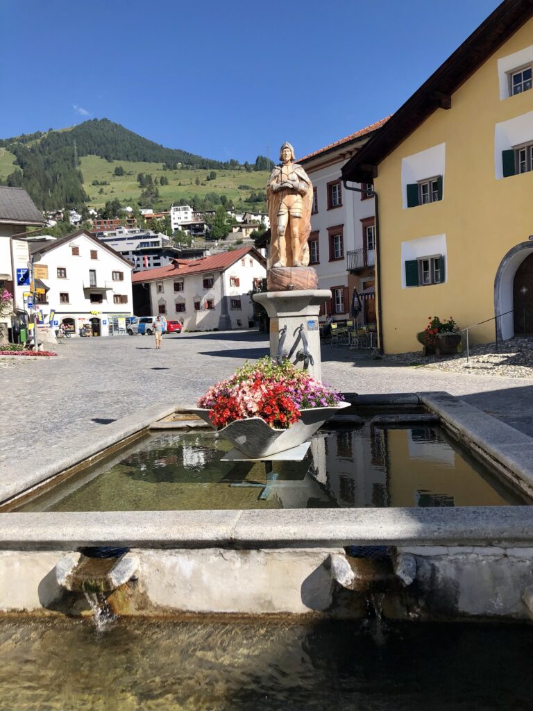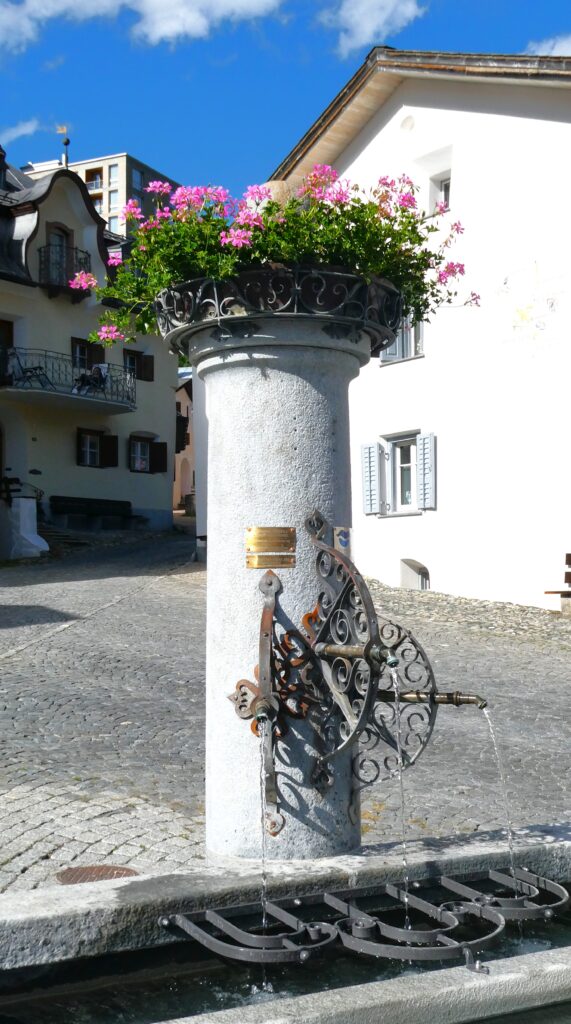 Der grösste Brunnen in Scuol befindet sich im Unterdorf und hier fliesst gleich eine Mineralwasser-Mischung.