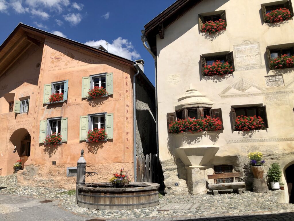 Der unverwechselbare Charme des Dorfs sind die typischen Engadinderhäuser, die mit «Sgraffito» verziert sind.