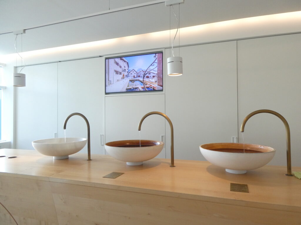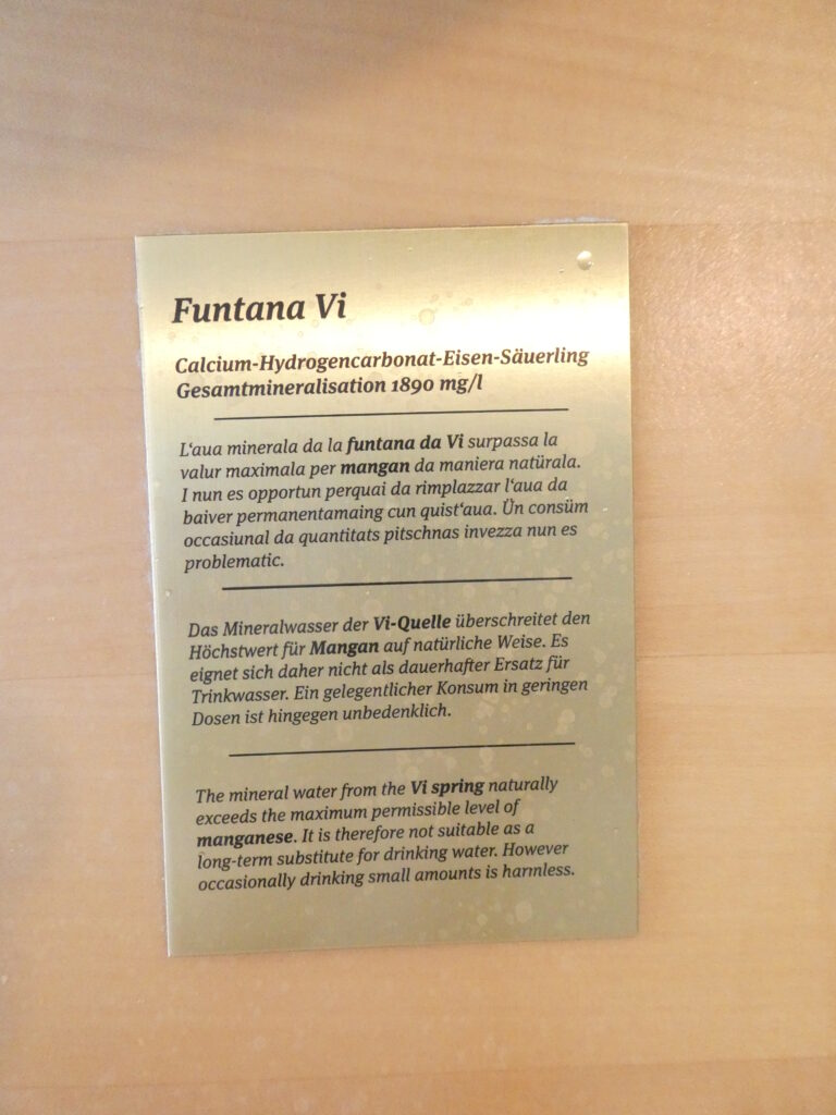 Diesen Sommer waren wir bereits zum vierten Mal in Scuol in den Ferien. Scuol im Unterengadin ist dank seiner Heil- und Mineralwasserquellen auch als Kurort bekannt. Insgesamt entspringen auf dem Gemeindegebiet von Scuol über zwanzig Mineralquellen. Ihre Vielfalt verdanken sie der geologischen Besonderheit des Unterengadins. Man trifft diese Quellen überall in Scuol an, sei es bei den öffentlichen Brunnen oder im Mineral- und Gesundheitsbad Bogn Engiadina. Gleich beim Eingang kann man von drei ganz Unterschiedlichen Mineralwasser trinken.