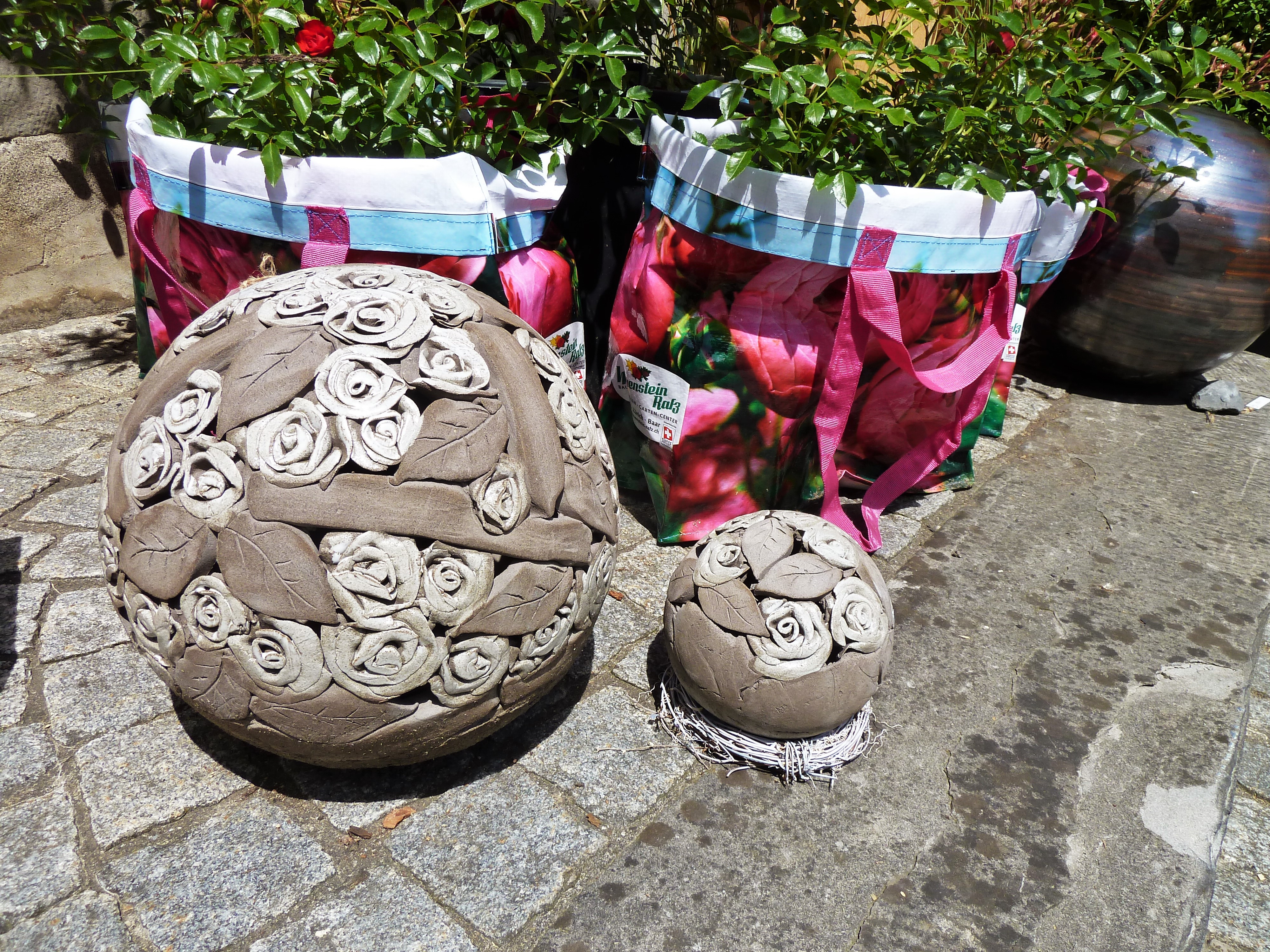 Es scheint, dass es kein Material gibt, aus dem nicht eine Rose gefertigt werden kann. Hier nur ein paar Beispiele: Sei es aus Holz, Metall, Stoff, Ton oder Wachs, in ganz unterschiedlichen Grössen, aber jedes einzelne ein Kunstwerk,