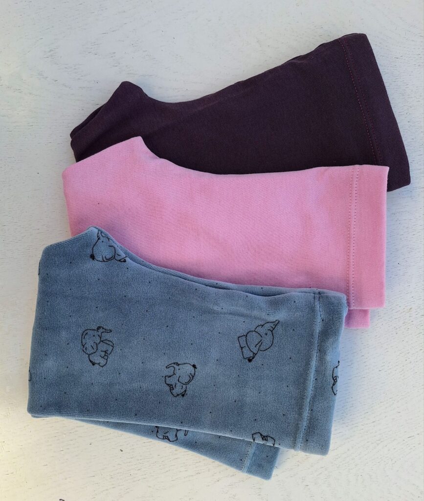Lange Zeit stand meine Nähmaschine still, aber als es mir wieder besser ging, war es an der Zeit, Kleidung für die kälteren Tage für unsere Enkelinnen zu nähen. Aus Single-Jersey habe ich für die grosse Enkelin Unterziehhemdchen genäht. Das blaue Shirt entstand aus einem Reststück für die kleine Enkelin, und auch die drei Leggings sind für sie. Der gestreifte Pullover war ursprünglich ein Schal, den die Gotte der älteren Enkelin getragen hat. Vom rosagemusterten Stoff reichte es für beide Mädchen für ein Shirt. Auch das Raglanshirt habe ich aus einem Reststück genäht. Das weiss gemusterte Shirt musste ich stückeln, um eine Grösse 80 zu nähen. So konnte ich einige Reststücke sinnvoll verwerten.