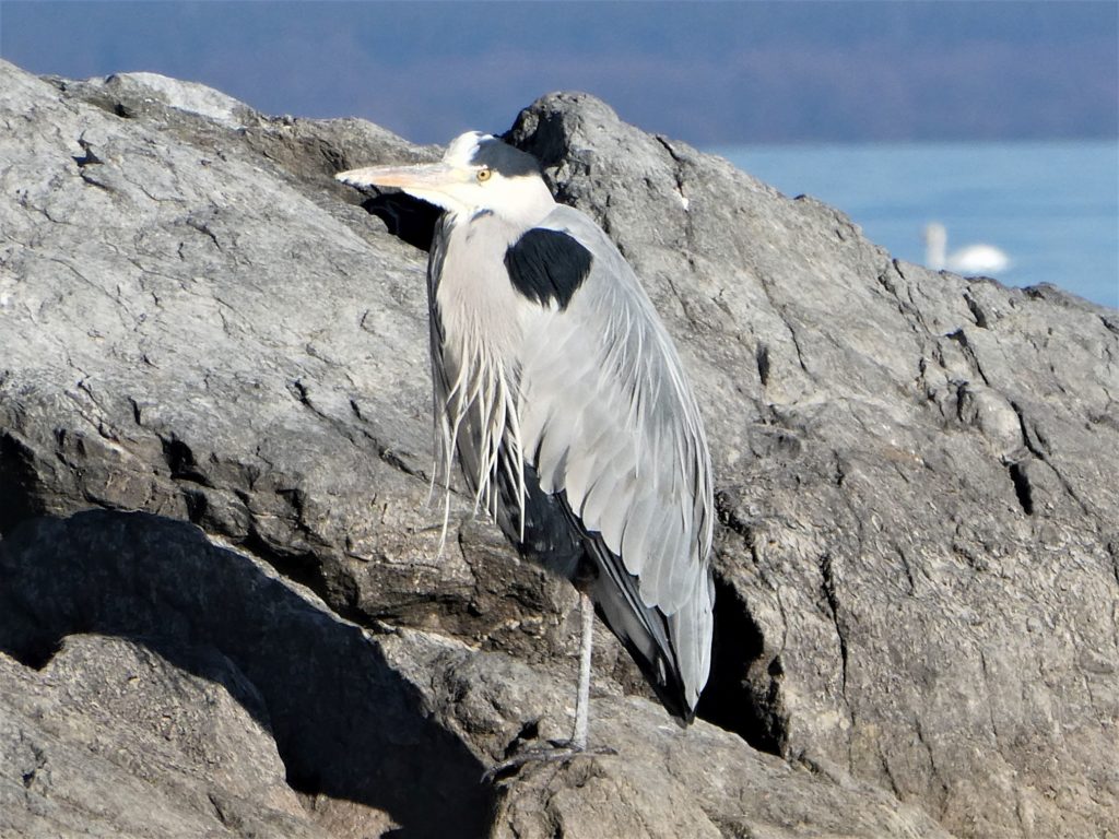 Den Graureiher treffe ich eigentlich immer an, auch wenn er an diesem Tag gut getarnt war auf den Steinen.