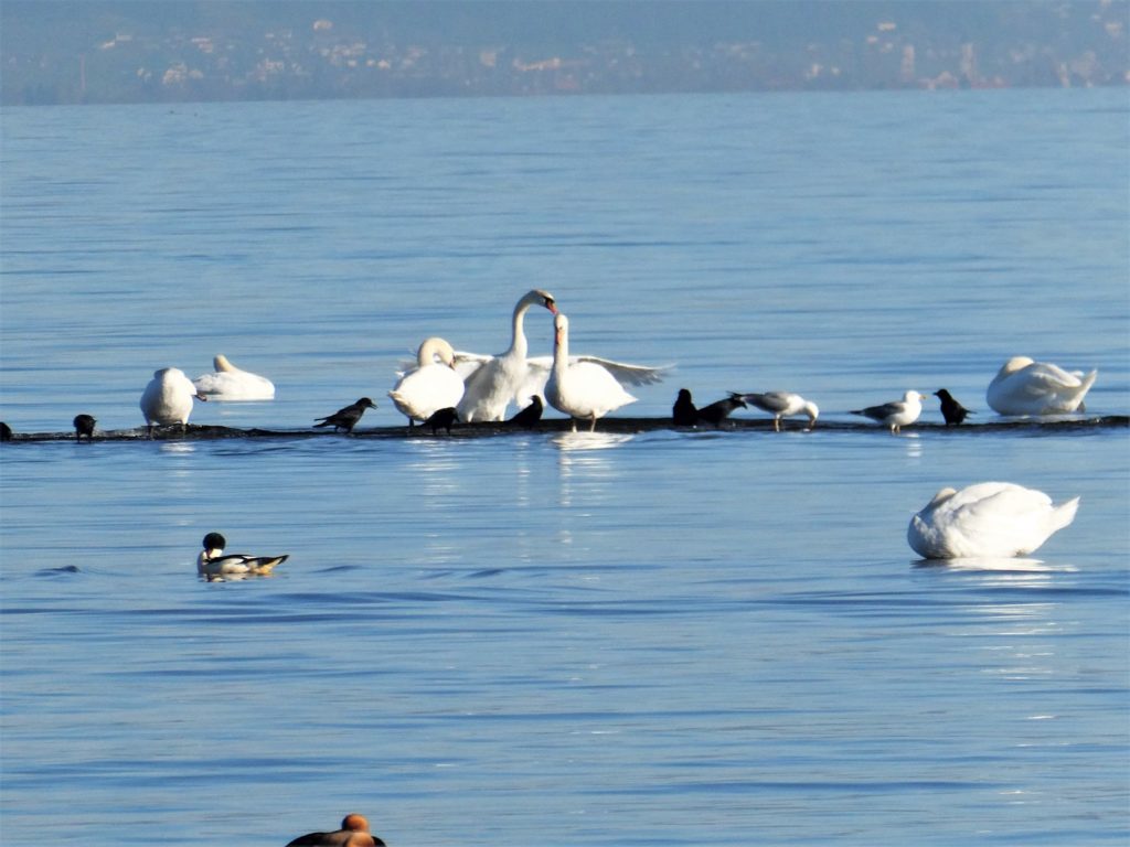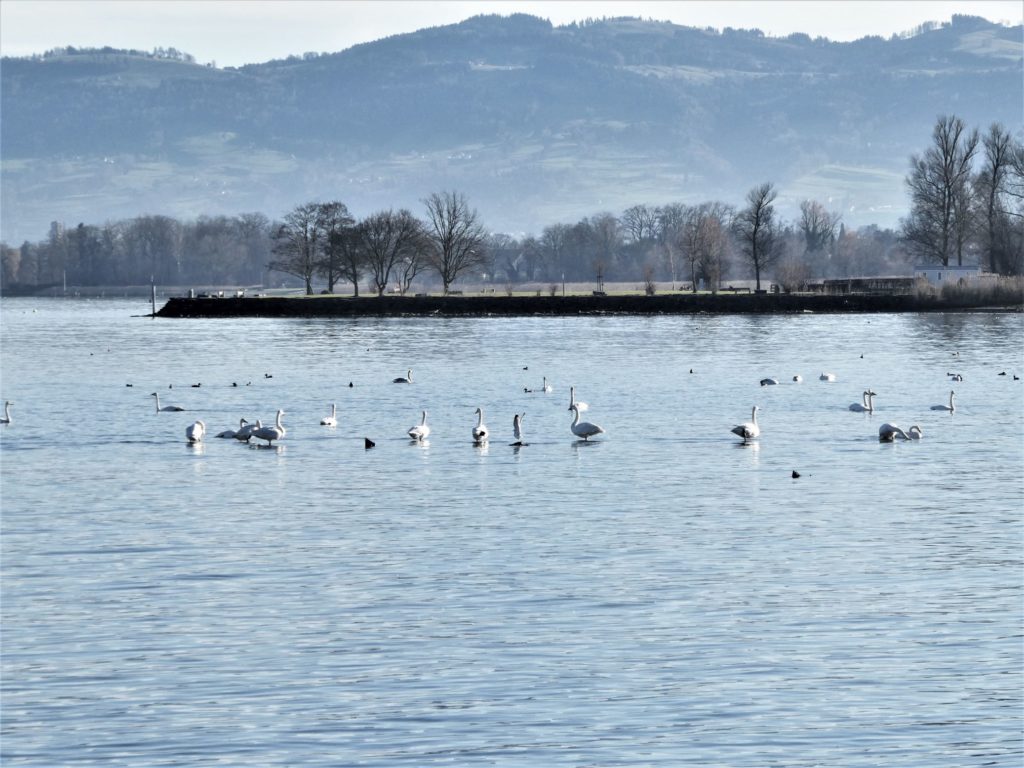 Das sind seltene Momente, wenn die Singschwäne sich bei uns in der Seebucht versammeln. Ihr Gesang ist weit herum hörbar. Viele kennen den wunderbaren Gesang nicht, darum versuchte ich ein Video zu machen.
