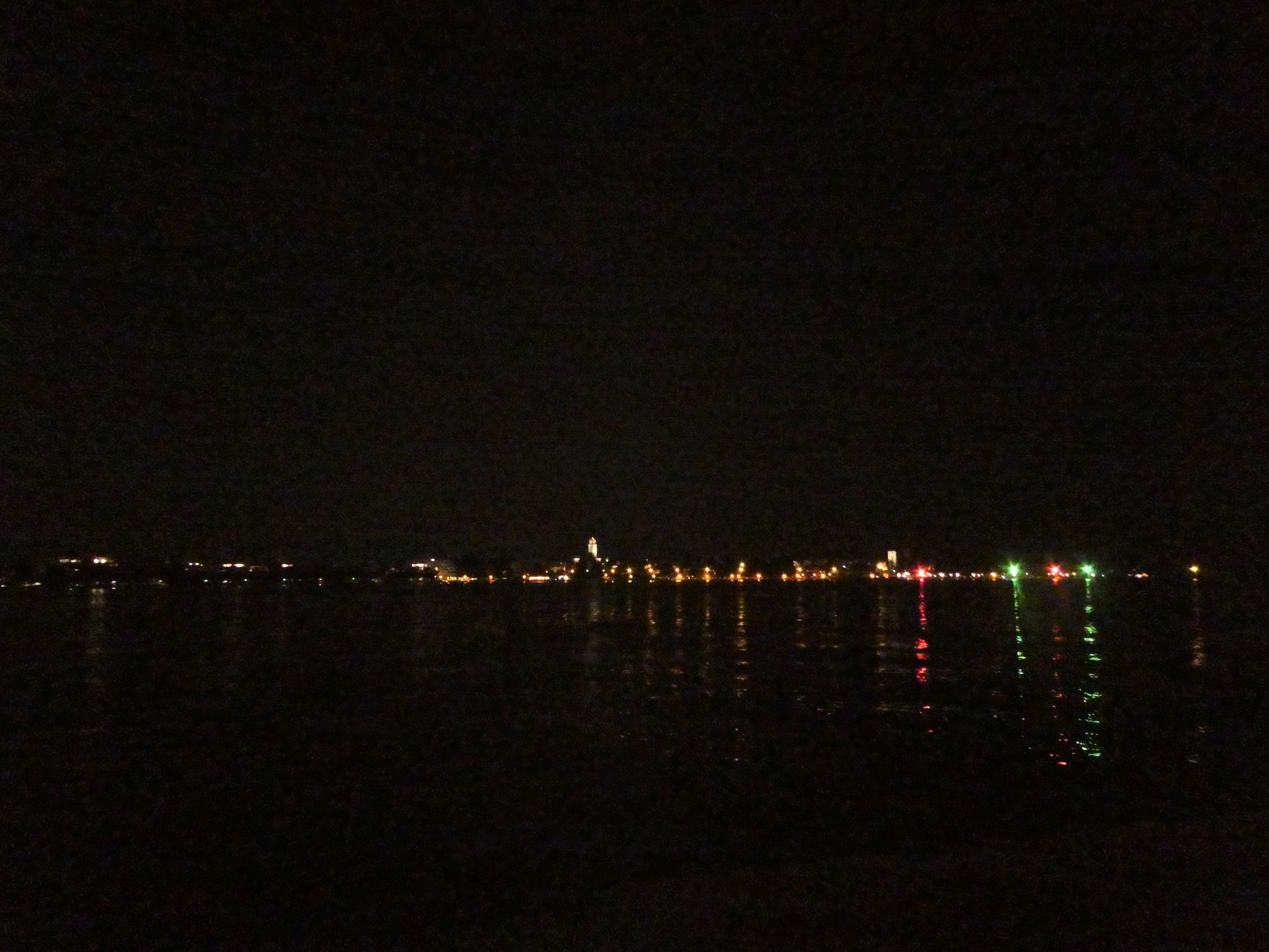 In der Nacht leuchten die Lichter der Nachbarstadt. Nach der Vorstellung waren wir froh um den ruhigen Ort, um unsere Köpfe zu lüften.